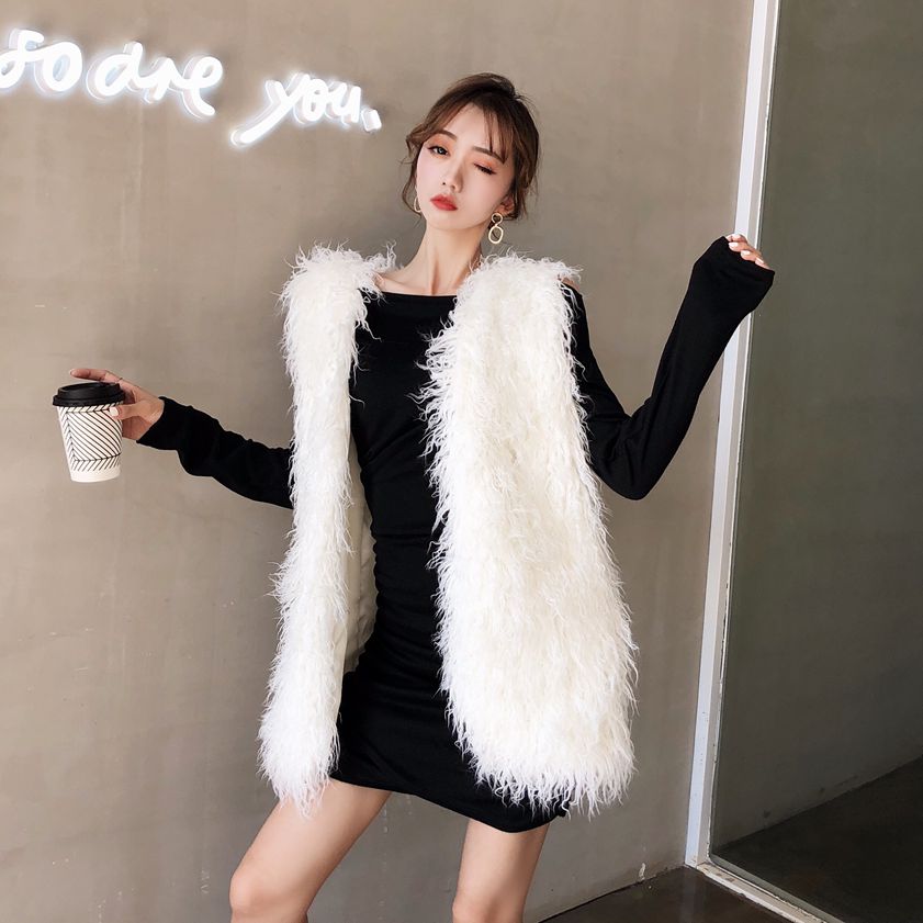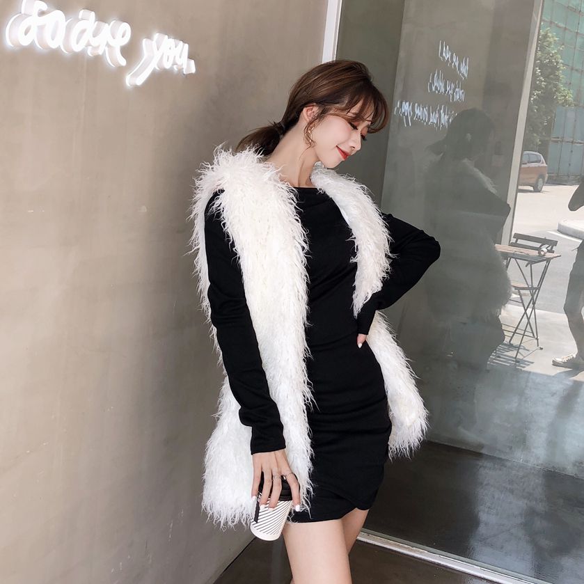 馬甲女秋冬新款中長款顯瘦百搭外套兩件套馬夾褶皺連衣裙時尚套裝