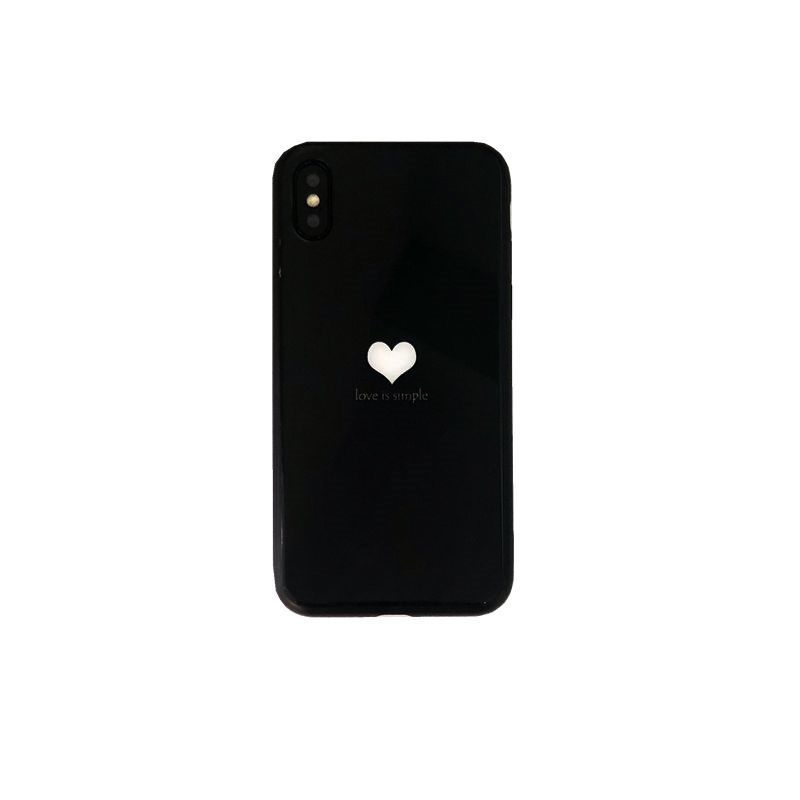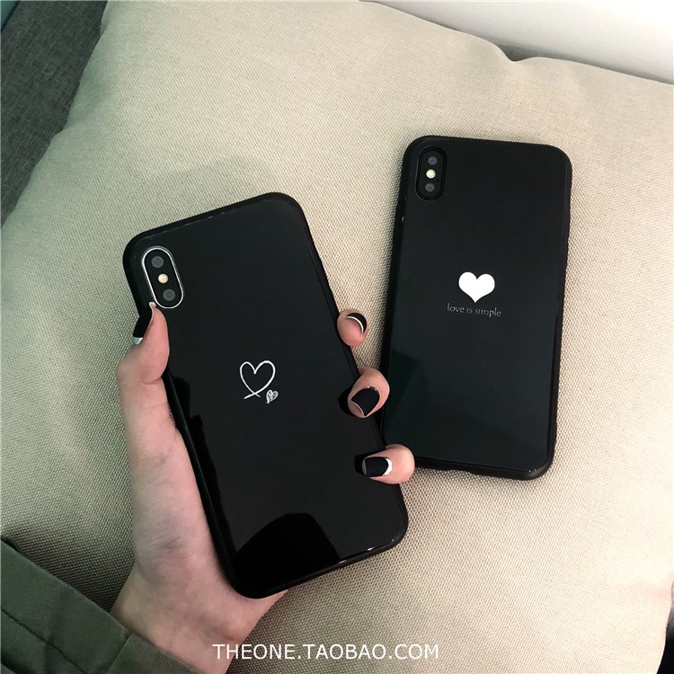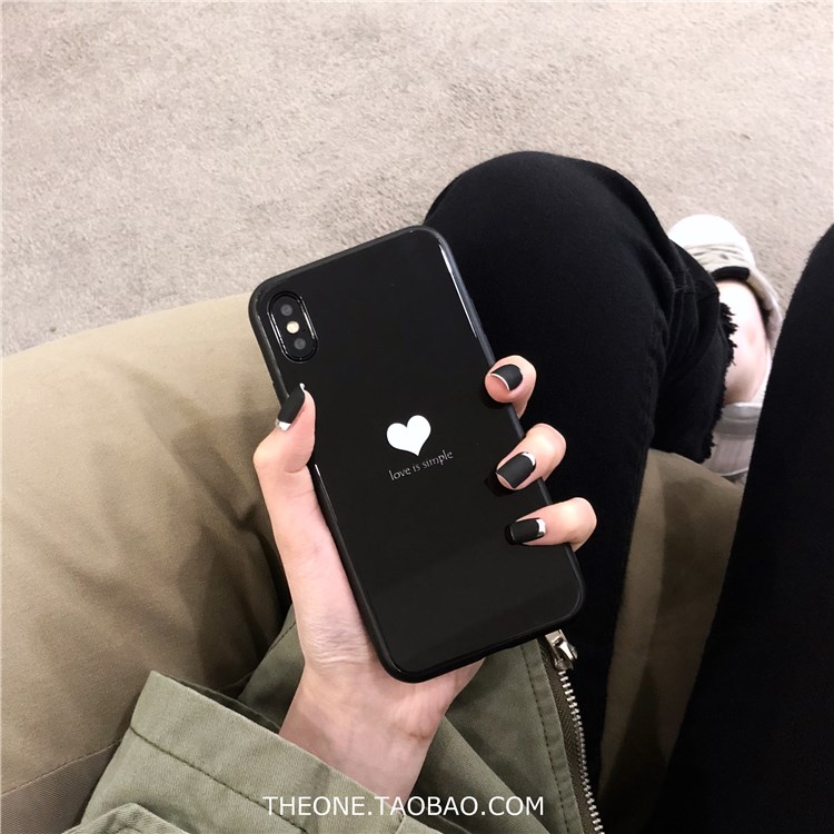 / 簡約黑色玻璃愛心蘋果X手機殼iphone7plus/8/6S情侶全包軟殼女款