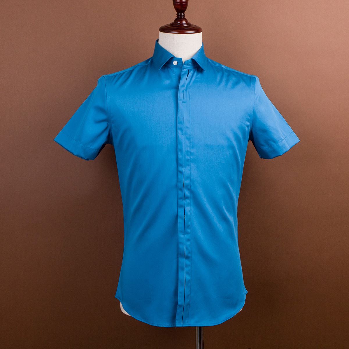 夏季新品短袖襯衫男海登純棉時尚修身款男裝純色絲光棉個性襯衣