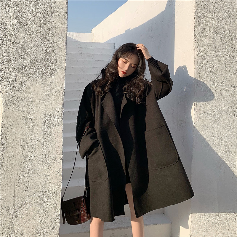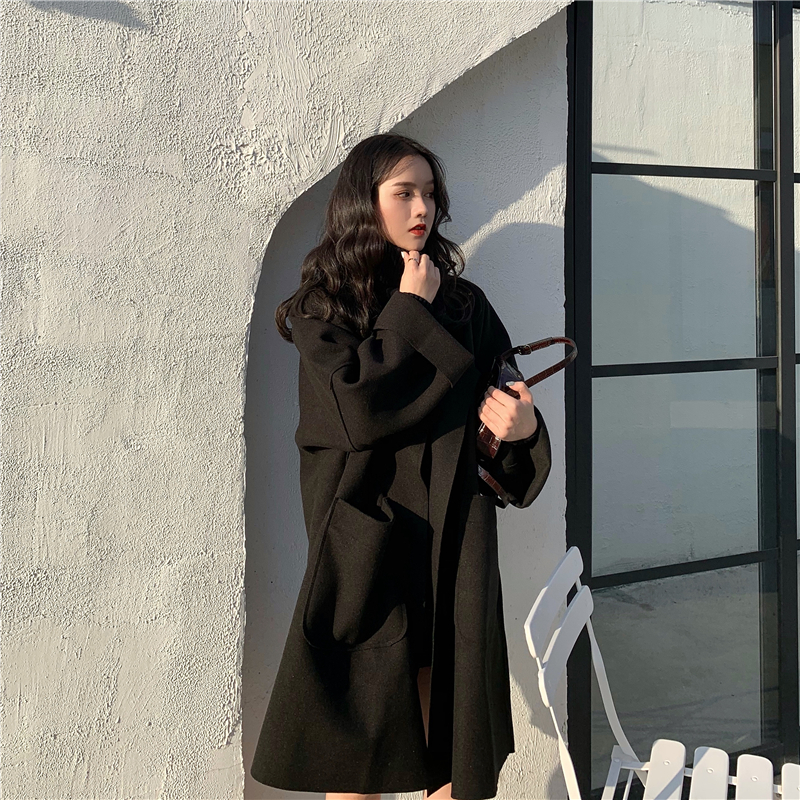 2018新款保暖時尚開衫大衣女中長款秋冬季韓版學生毛呢呢子外套潮