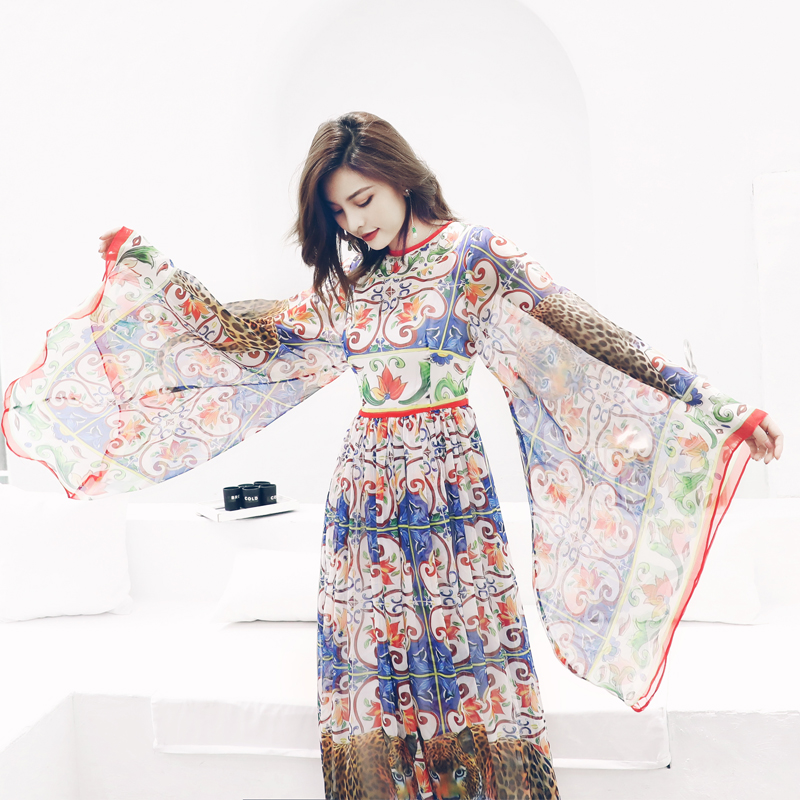 / 氣質雪紡復古印花溫柔超仙女海邊度假裙子長款連衣裙女夏2018新款