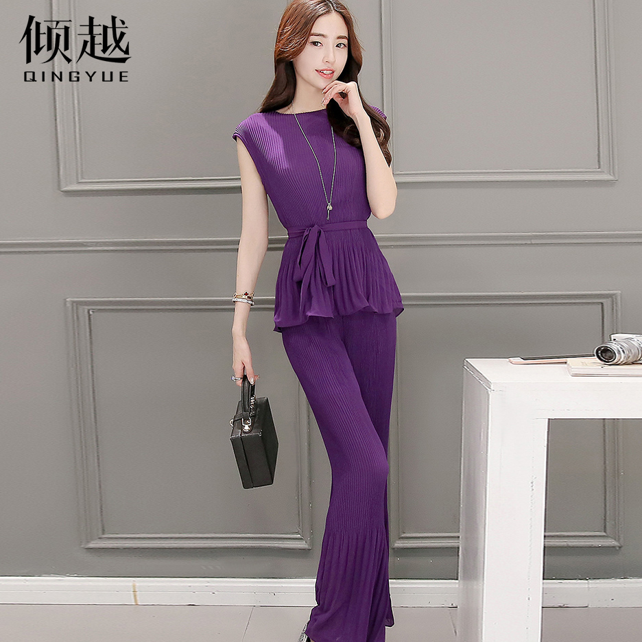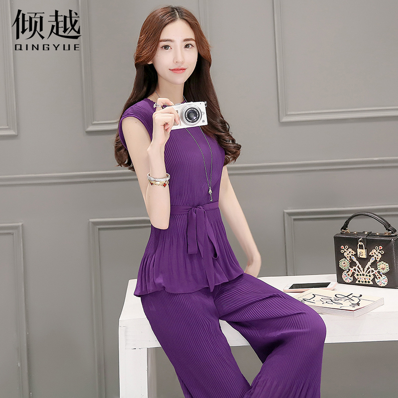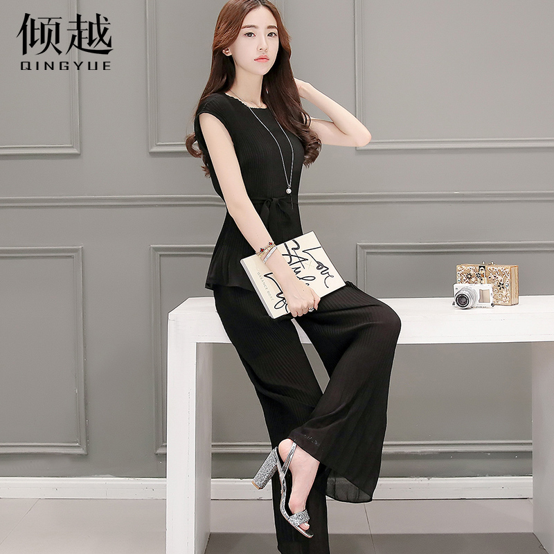 / 闊腿褲套裝女夏季2017新款修身顯瘦小香風兩件套時尚韓版氣質收腰