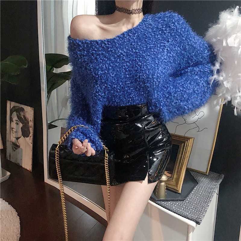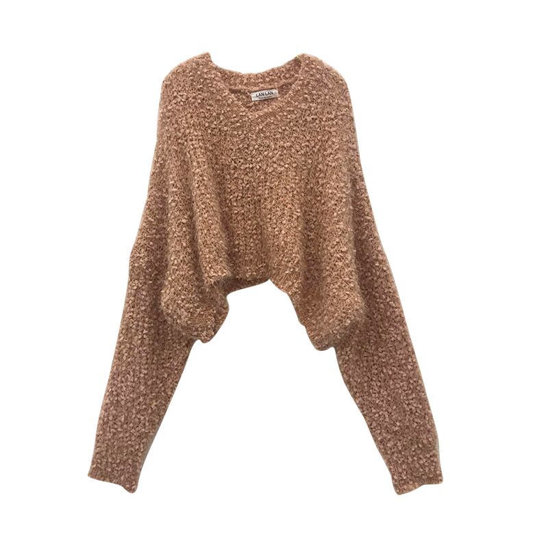 / 網紅新品v領毛衣2018新款明星私衣同款百搭針織上衣清新短款露肩