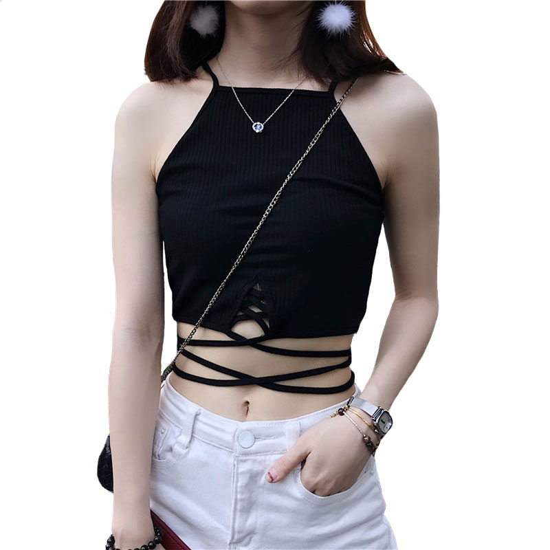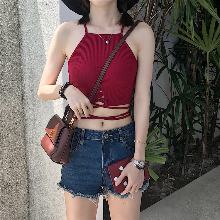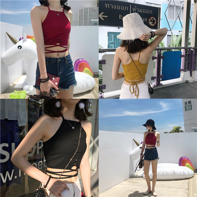 / 春夏女裝韓版修身顯瘦綁帶打底衫小吊帶外穿露臍短款小背心上衣潮