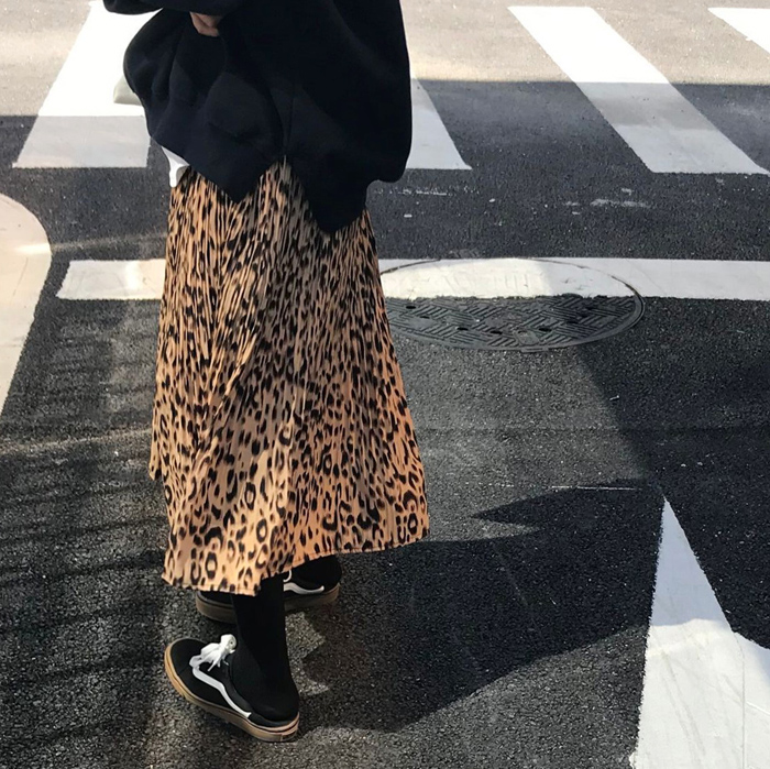 / 韓版chic復古裙子女秋冬2018新款豹紋高腰百褶裙半身裙中長裙~2色