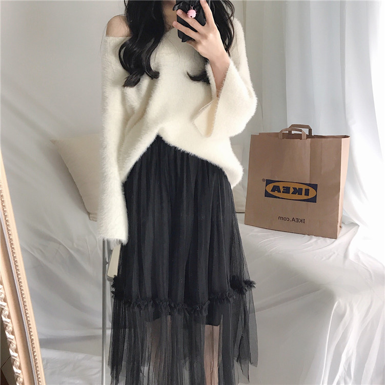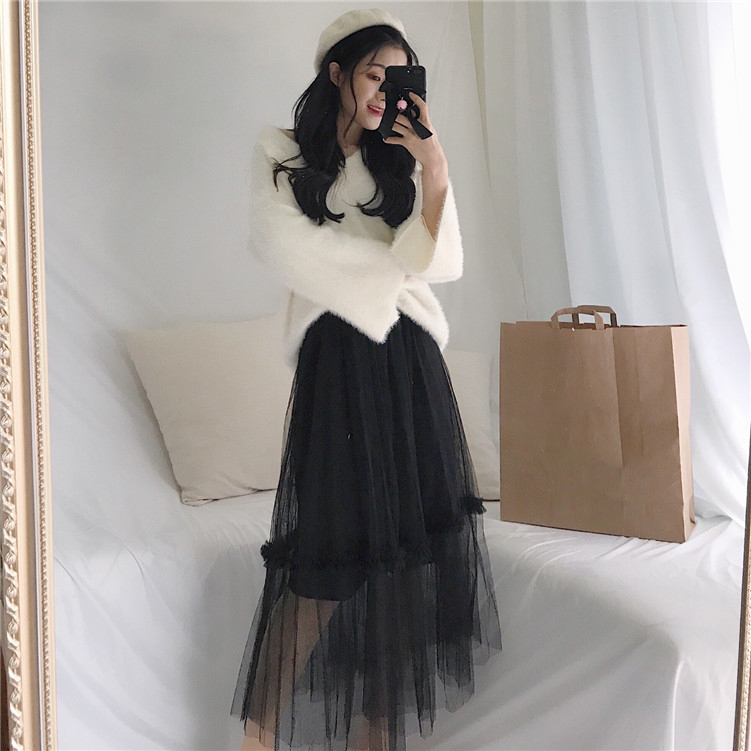 / chic風仙女紗裙高腰顯瘦秋裝新款百搭韓版半身裙大擺A字蓬蓬裙潮