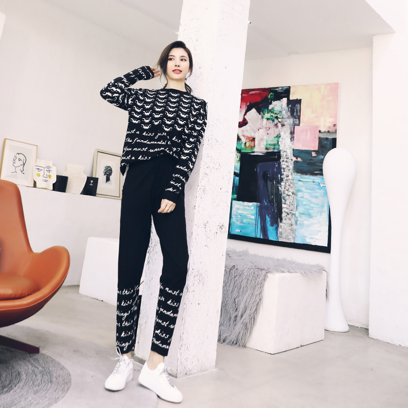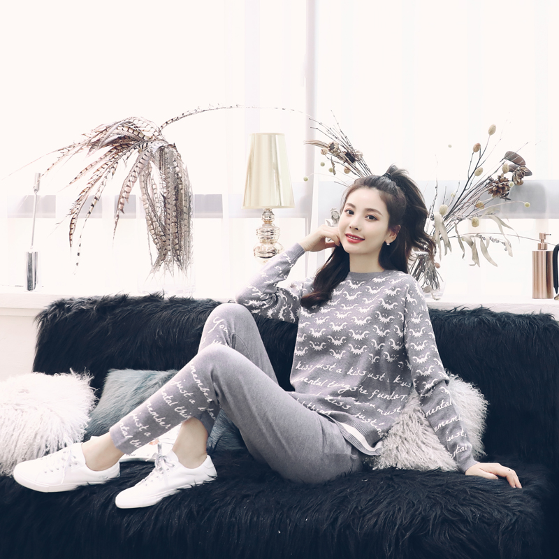 毛衣秋裝女2018新款套裝時尚網紅兩件套針織衫褲子女神氣質洋氣潮