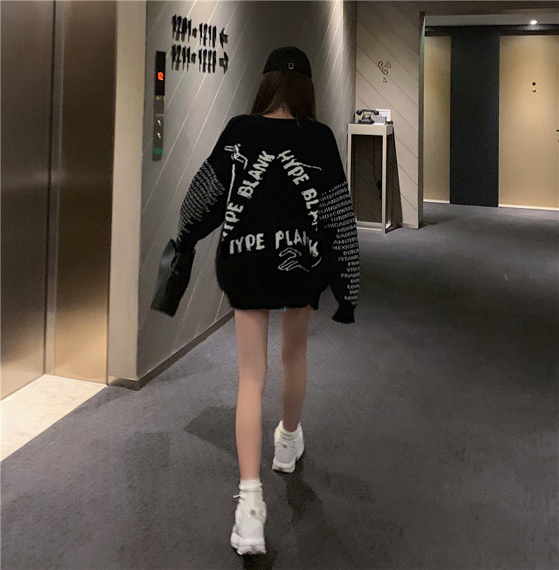 秋冬新款韓版時尚上衣復古chic百搭學生寬松慵懶風套頭兩面穿毛衣