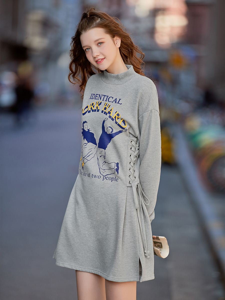 / MG小象中長款氣質連衣裙女冬寬松收腰顯瘦衛衣裙2018新款學生裙子