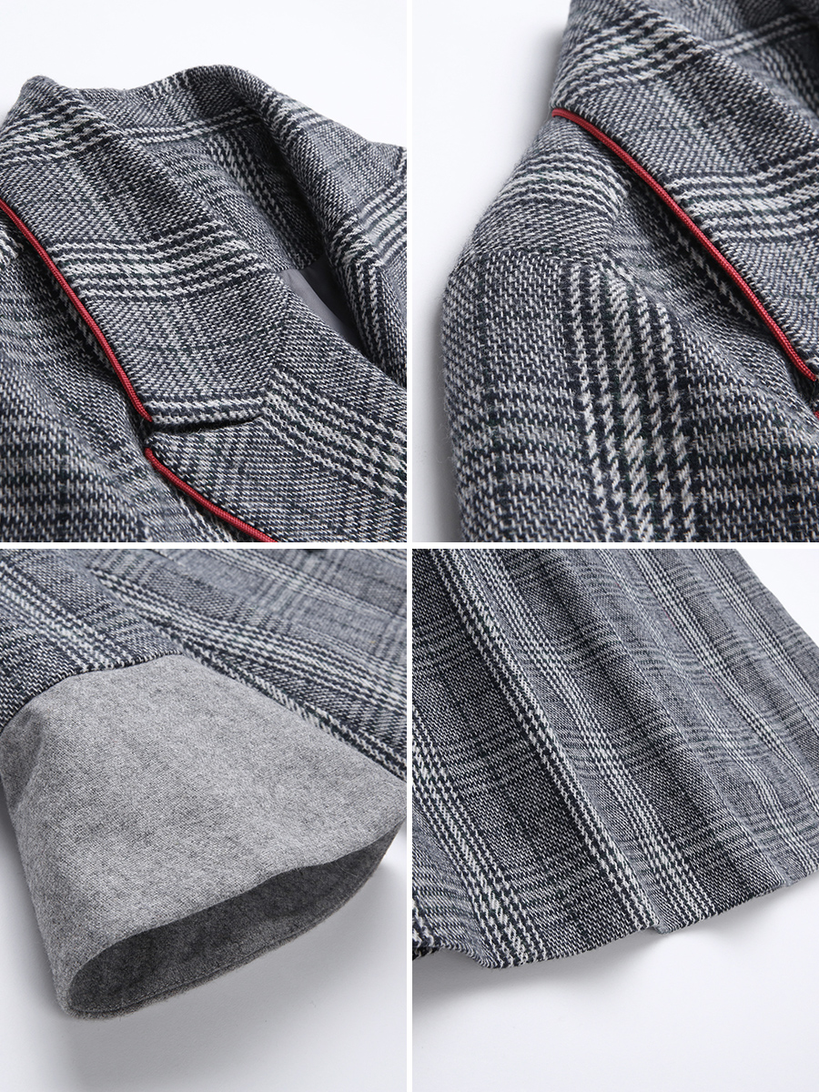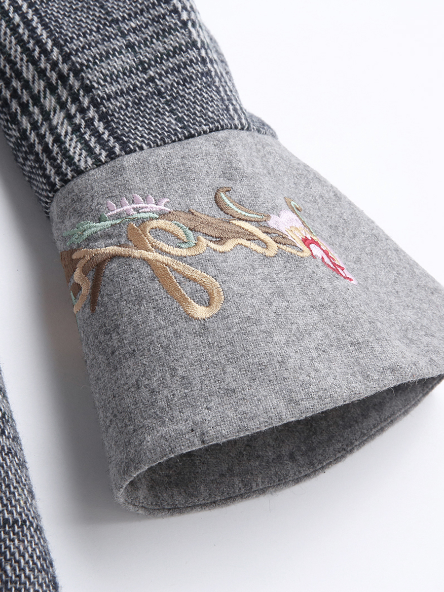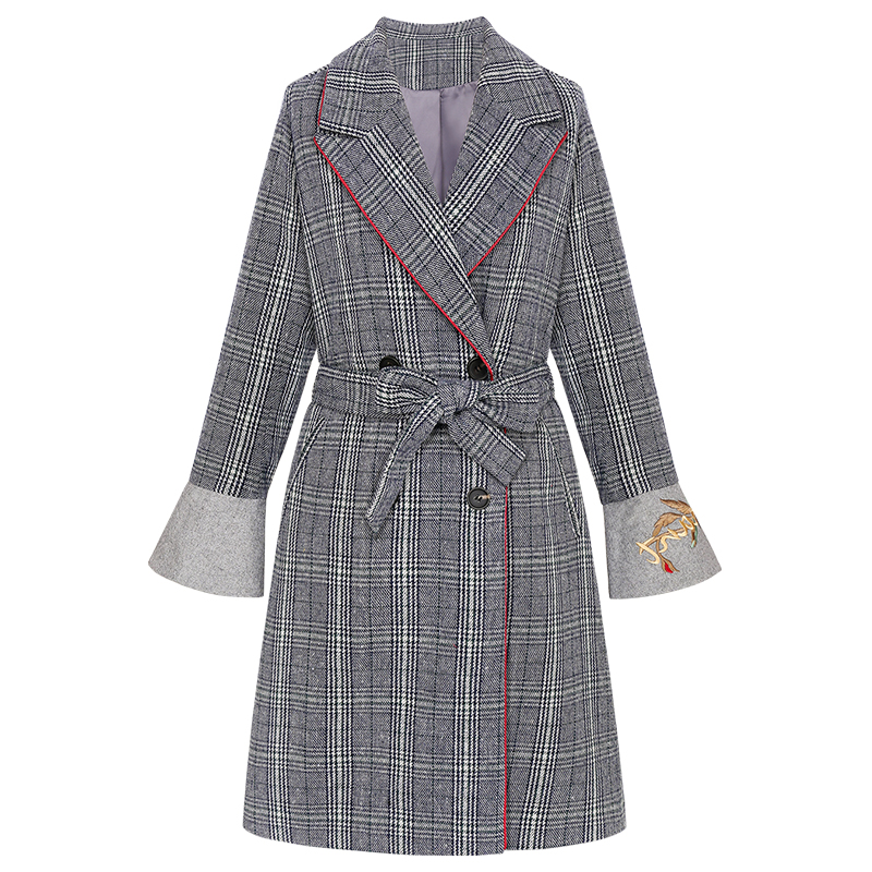 MG小象港風格子毛呢外套女中長款2018秋冬新款寬松刺繡收腰大衣潮