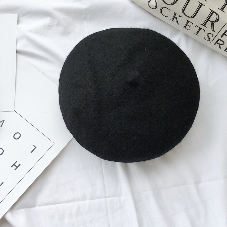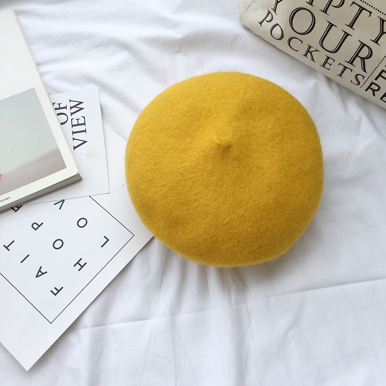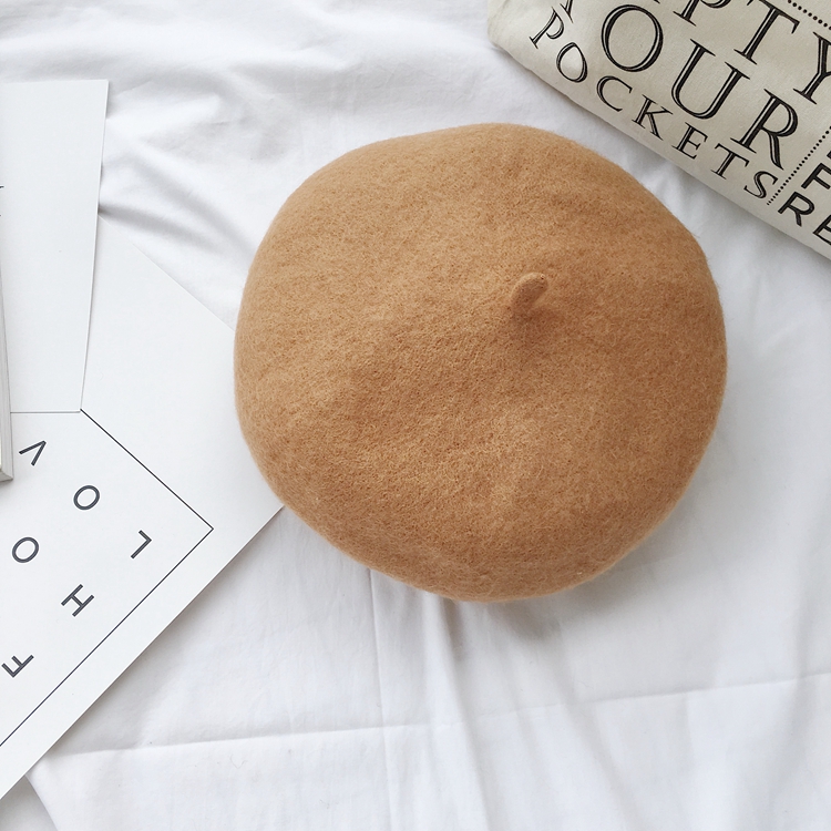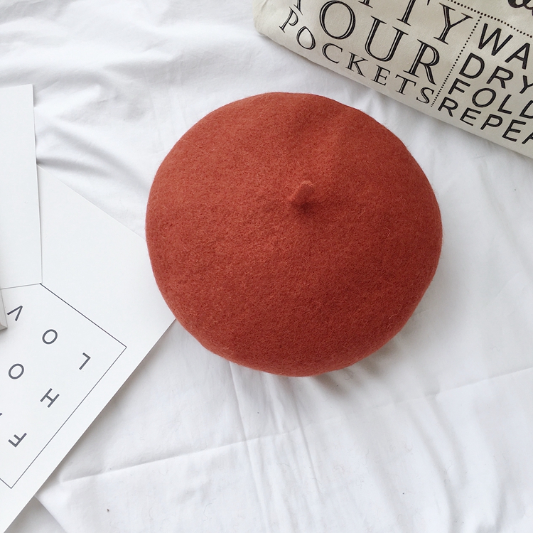 / 秋冬新款復古時尚chic氣質甜美百搭毛呢蓓蕾帽純色加厚羊毛貝雷帽