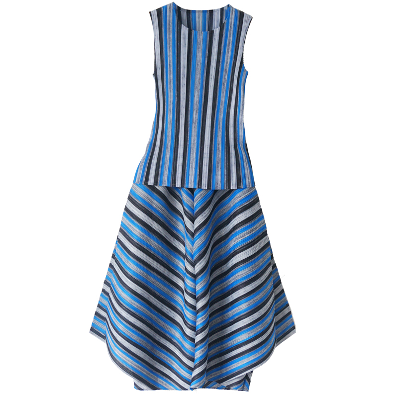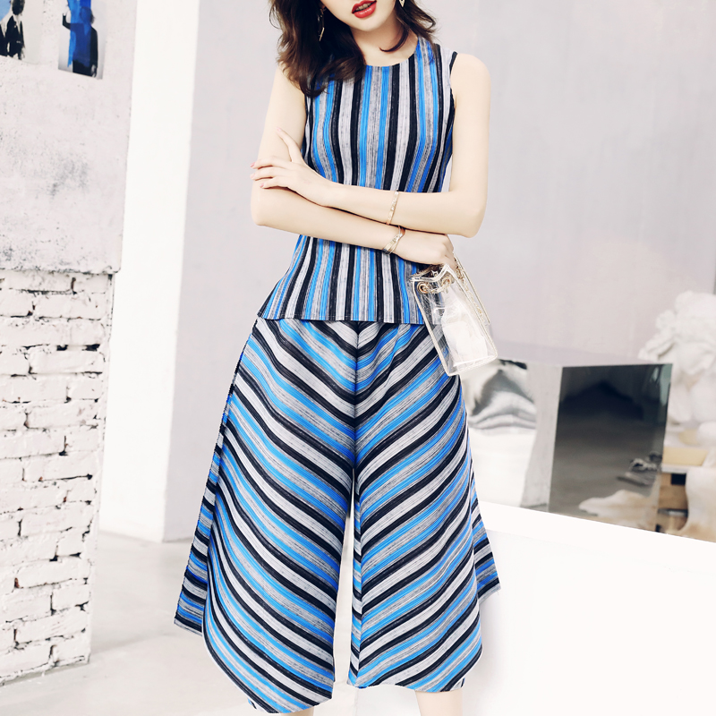 S秀名媛氣質套裝女夏2018新款無袖上衣顯瘦條紋闊腿時尚兩件套