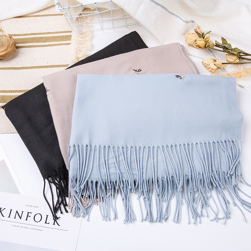 MG小象保暖刺繡圍巾女冬季長款韓版學生披肩2018新款小清新圍脖潮