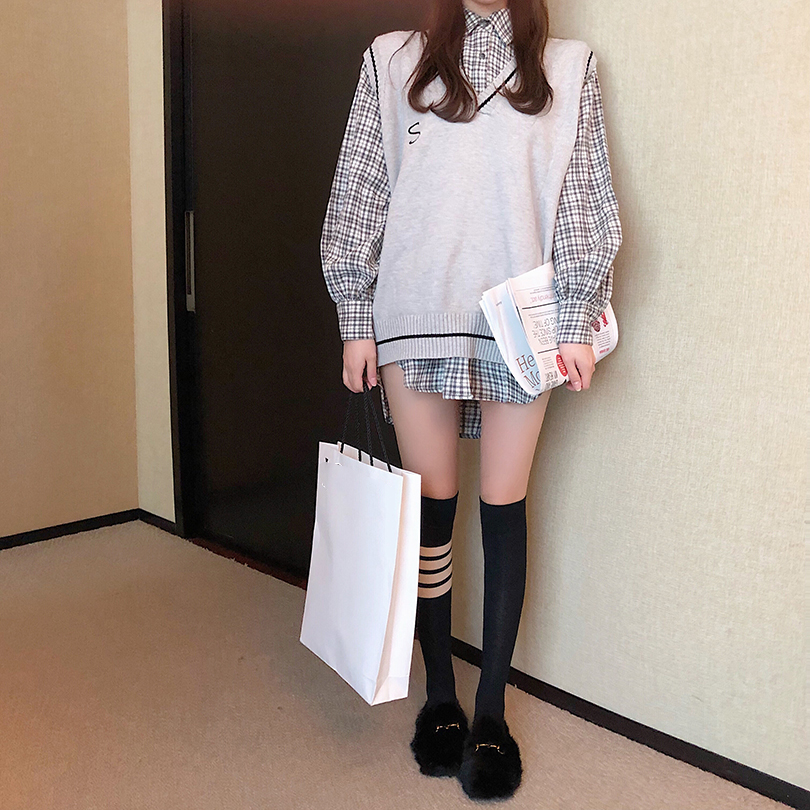 襯衫是中長款,套上馬甲可以露出衣擺,穿出下身失蹤的感覺