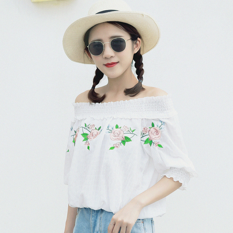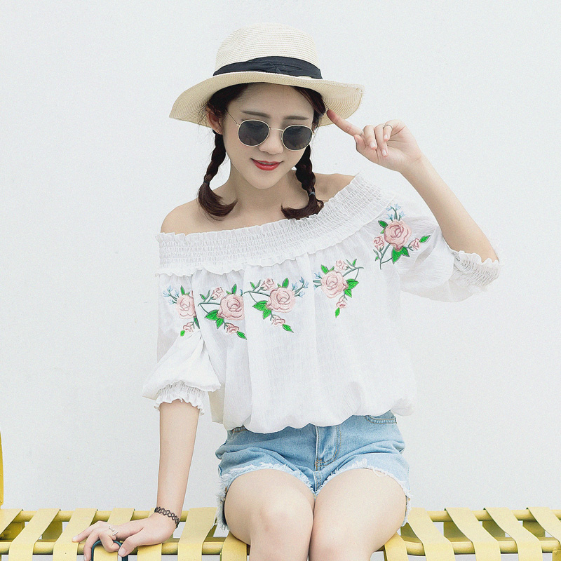 一股清新甜美風向你襲來,一字露肩的款式,