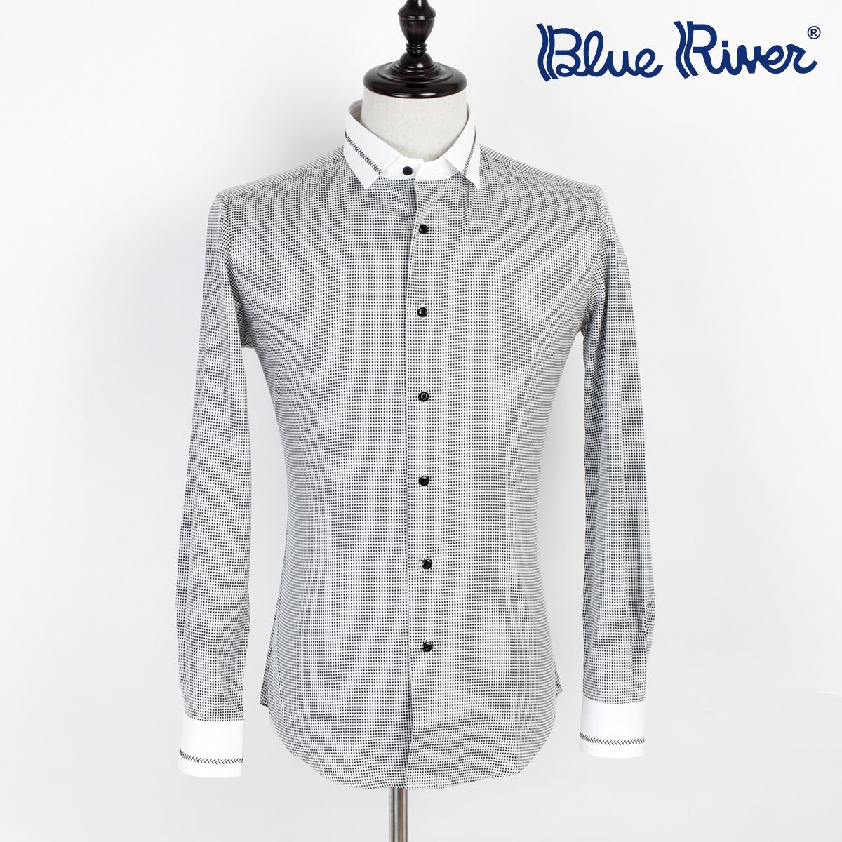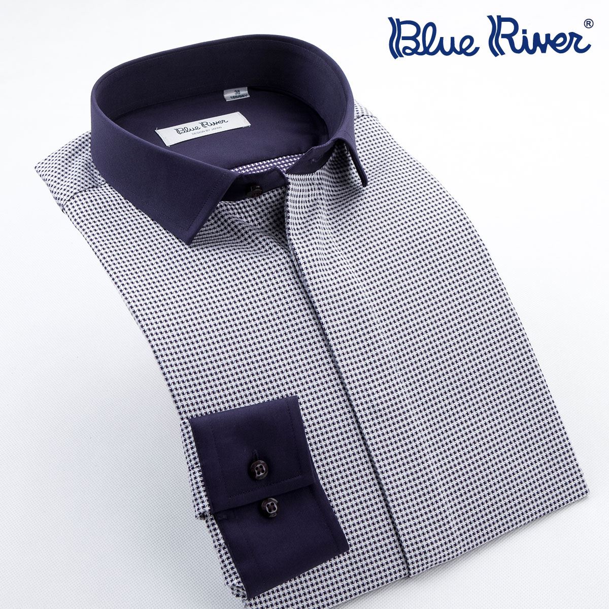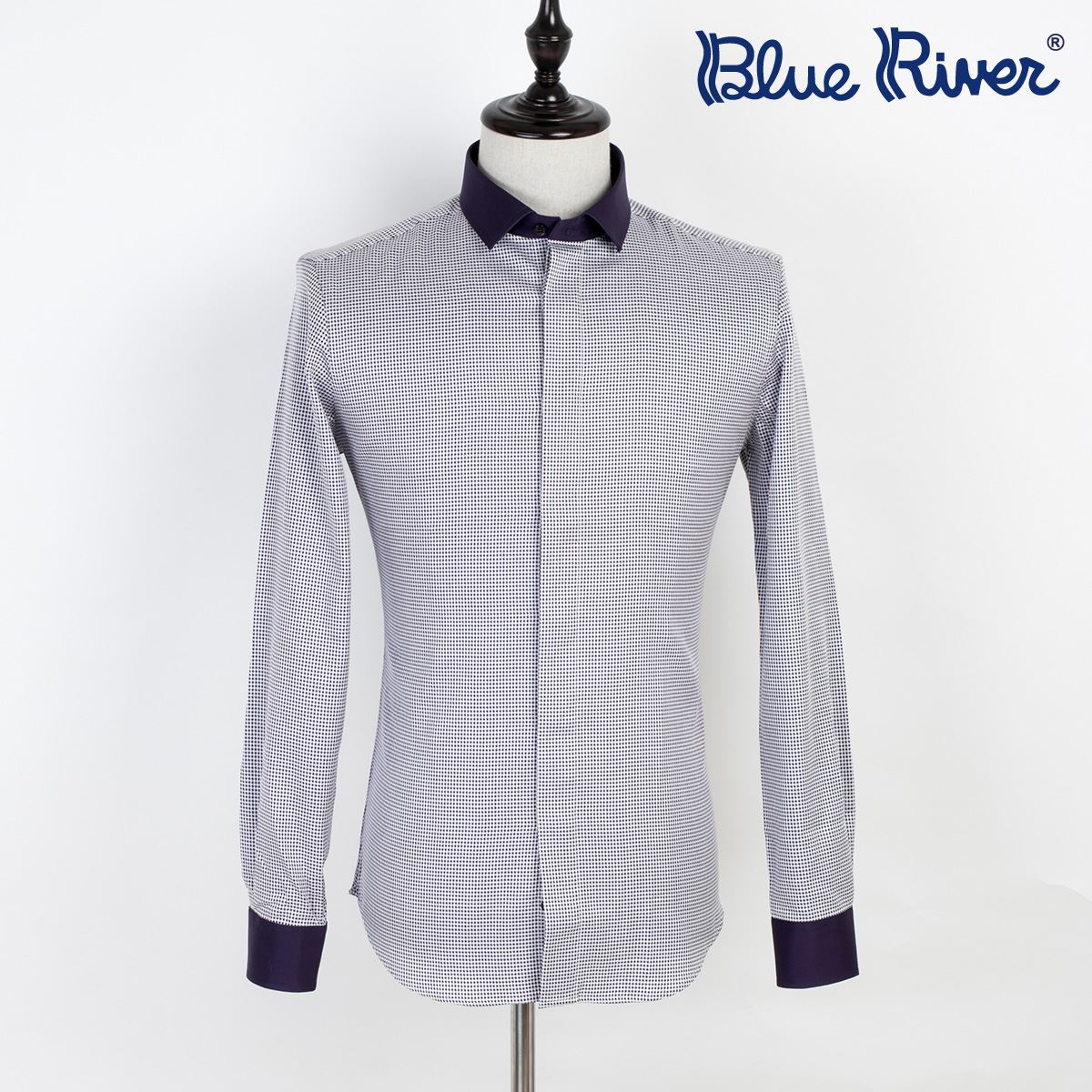 襯衫男長袖拼接千鳥格純棉免燙休閑修身英倫風襯衣秋裝商務男裝