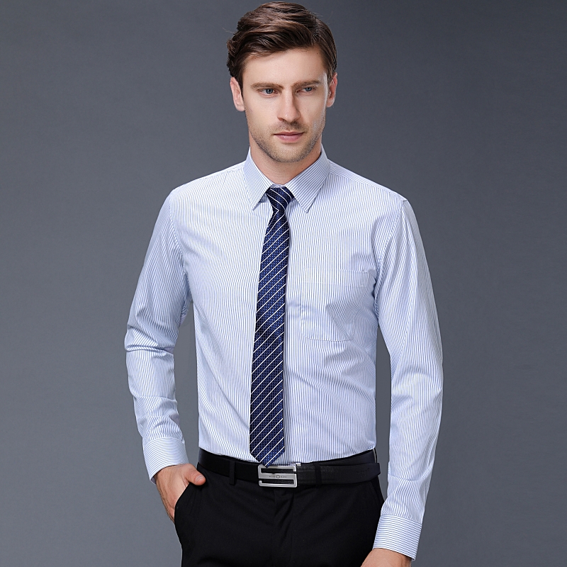 2018秋裝新款品牌中年男士長袖襯衫商務休閑男裝純棉免燙條紋襯衣