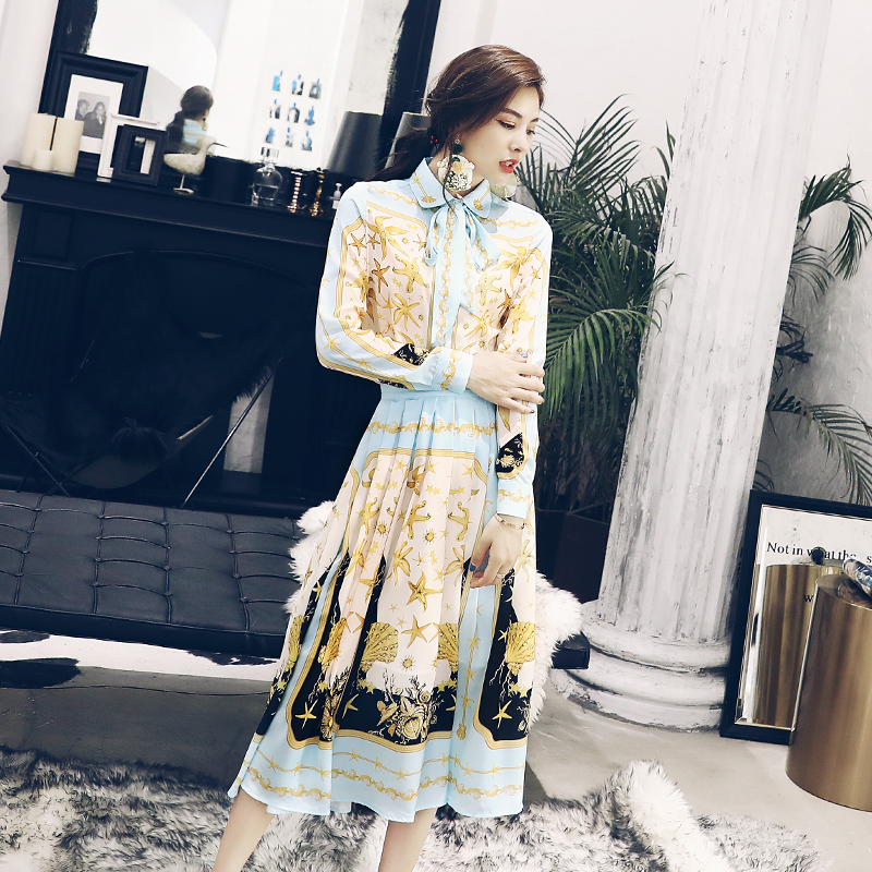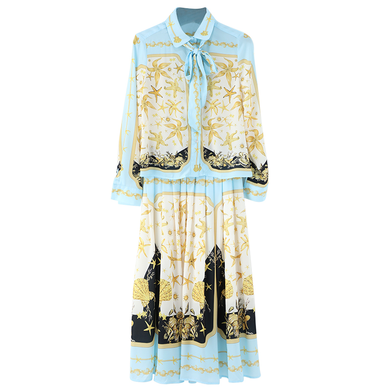 名媛氣質套裝裙秋季2018新款襯衫上衣印花半身百褶裙兩件套連衣裙