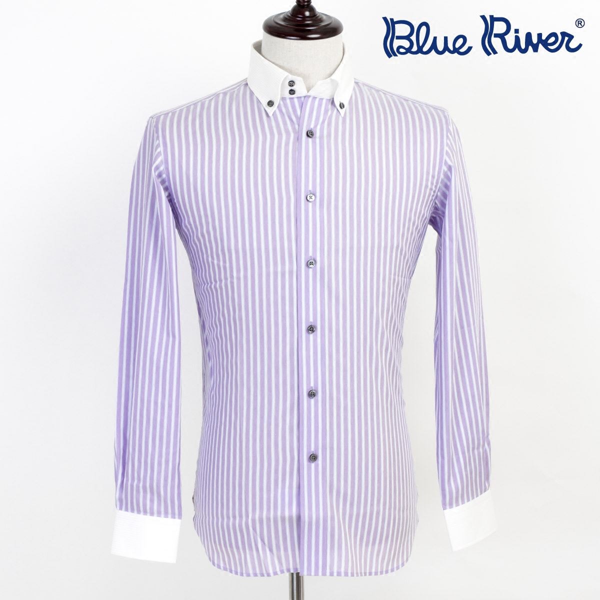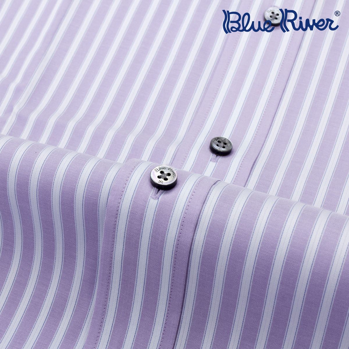 / BLUE RIVER/藍河商務白領襯衫紫色寬條紋高支棉長袖襯衣職業男裝