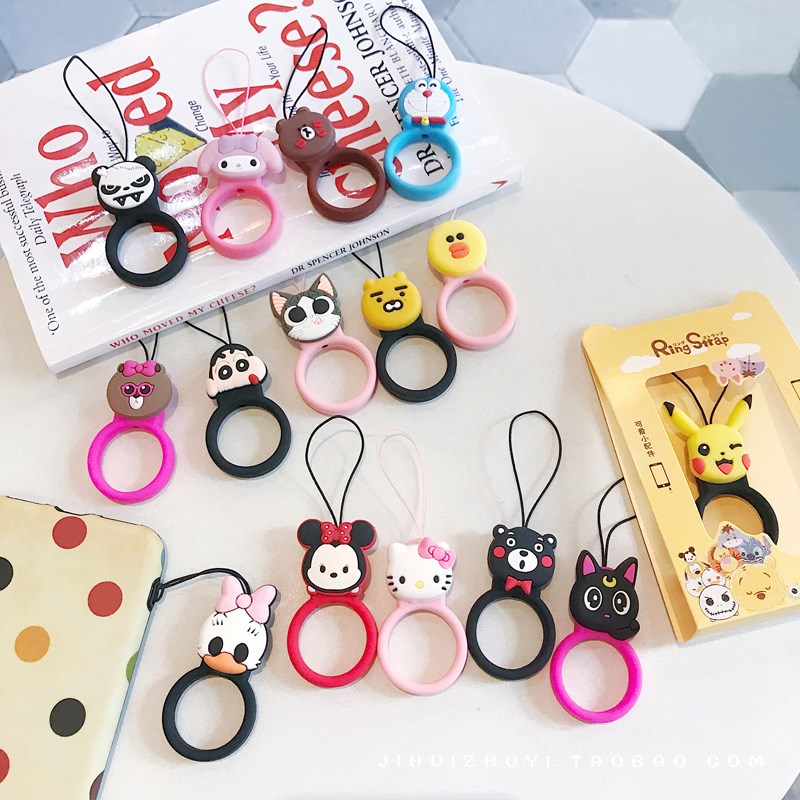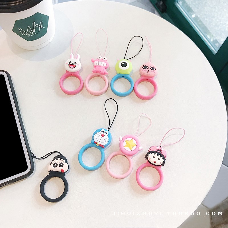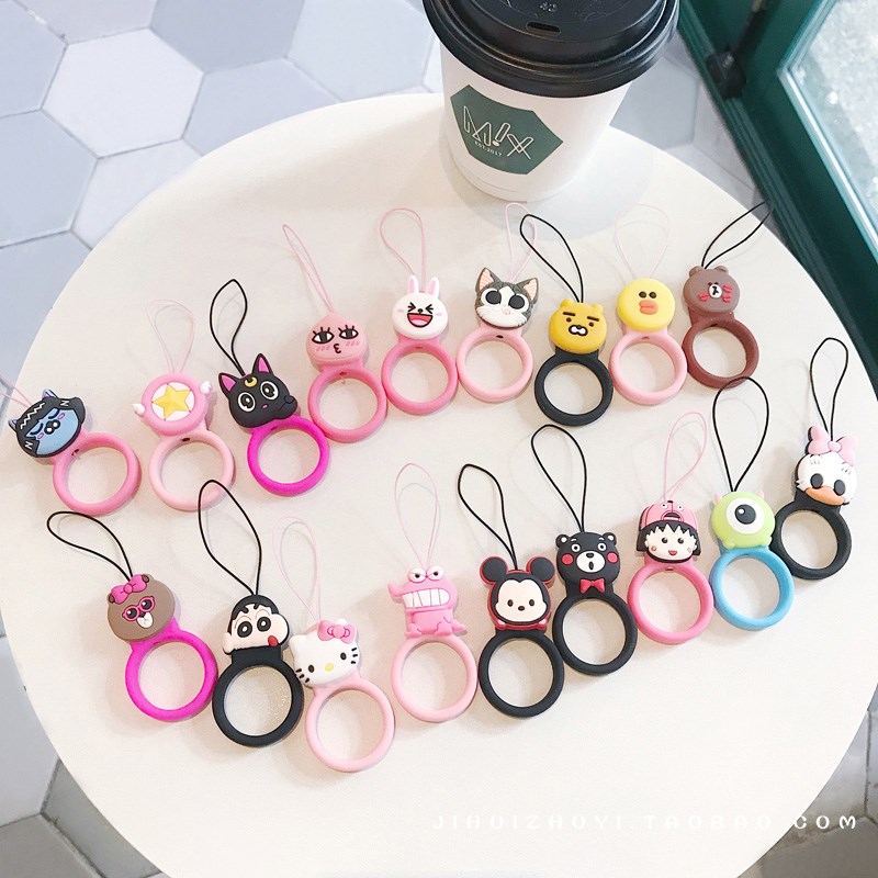 / 卡通硅膠小指環扣手掛繩掛件手機通用防摔女蘋果iPhone7/8X掛飾品