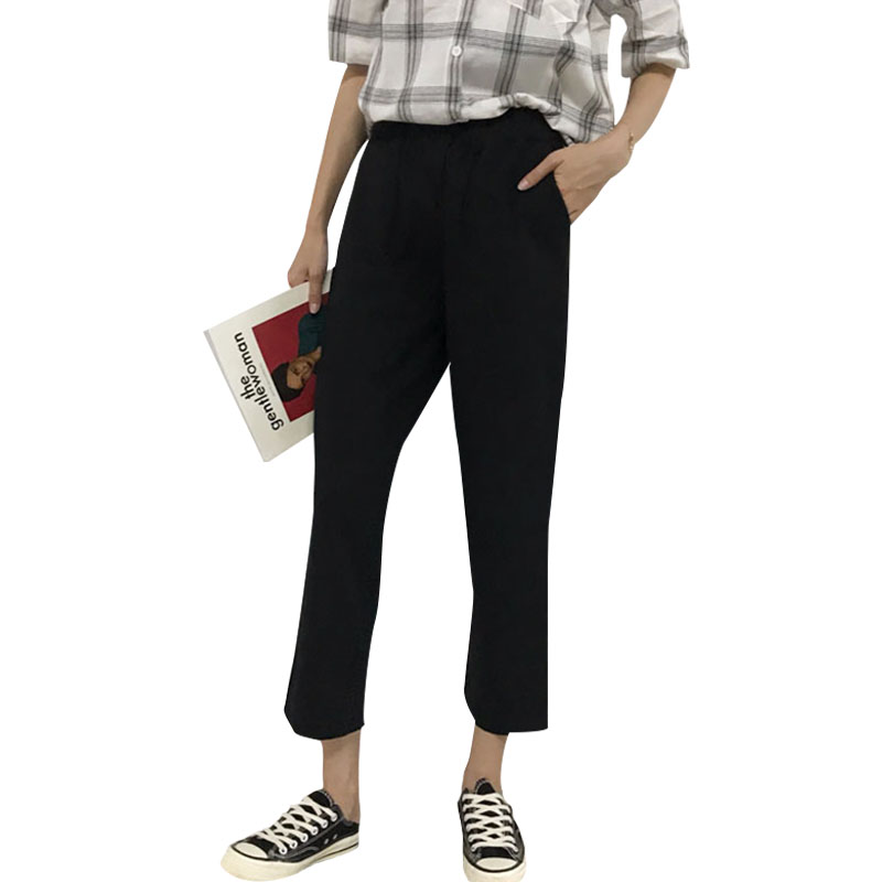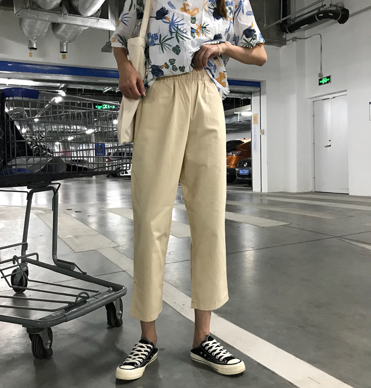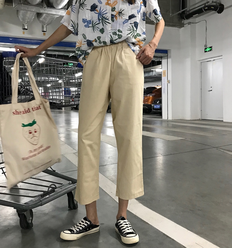 / 夏季女裝韓版松緊腰休閑褲學生直筒褲寬松高腰顯瘦闊腿褲九分褲潮
