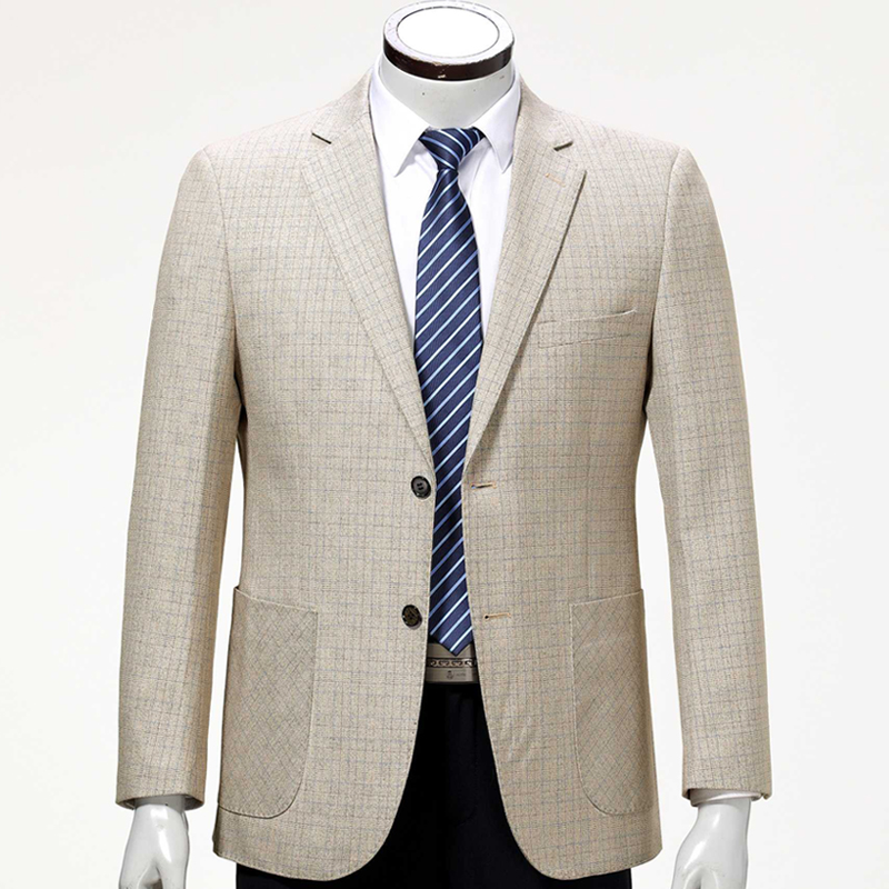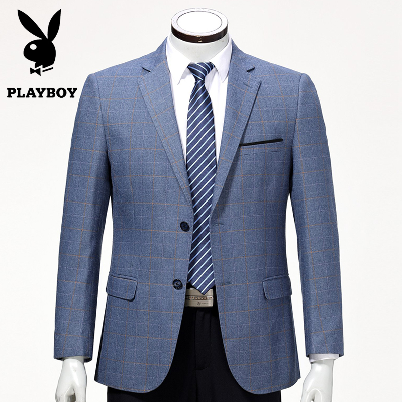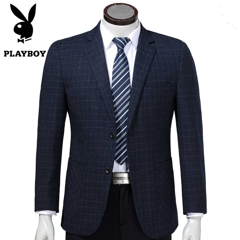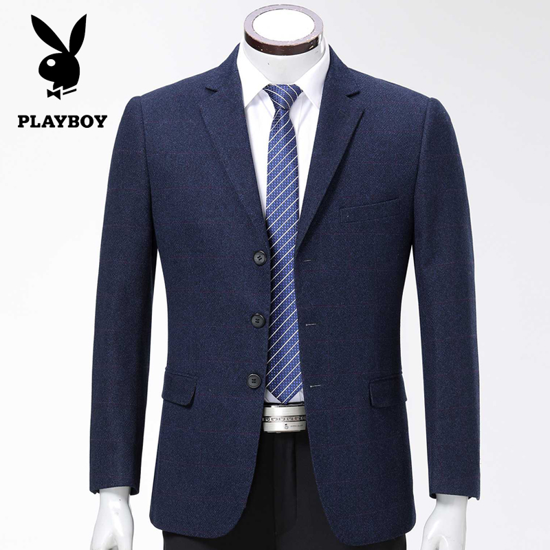 秋冬新款品牌中年男士羊毛西服商務休閑男裝格單件西裝外套男上衣
