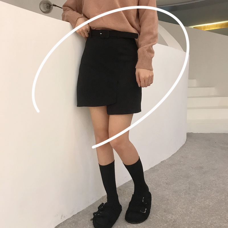 可可里小姐~韓風chic秋冬不規則A字半身裙帶腰帶