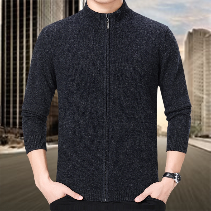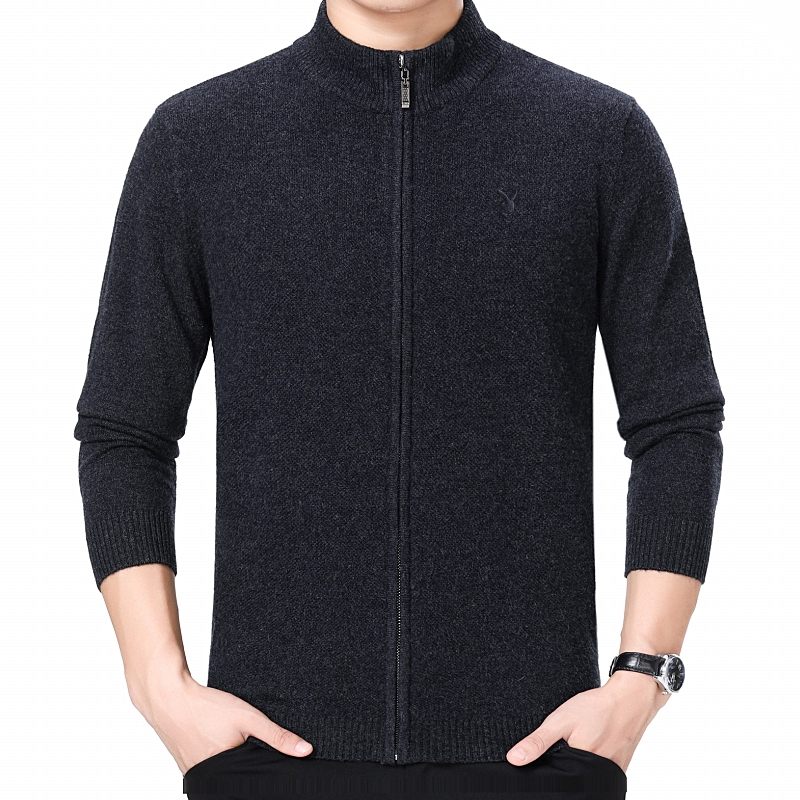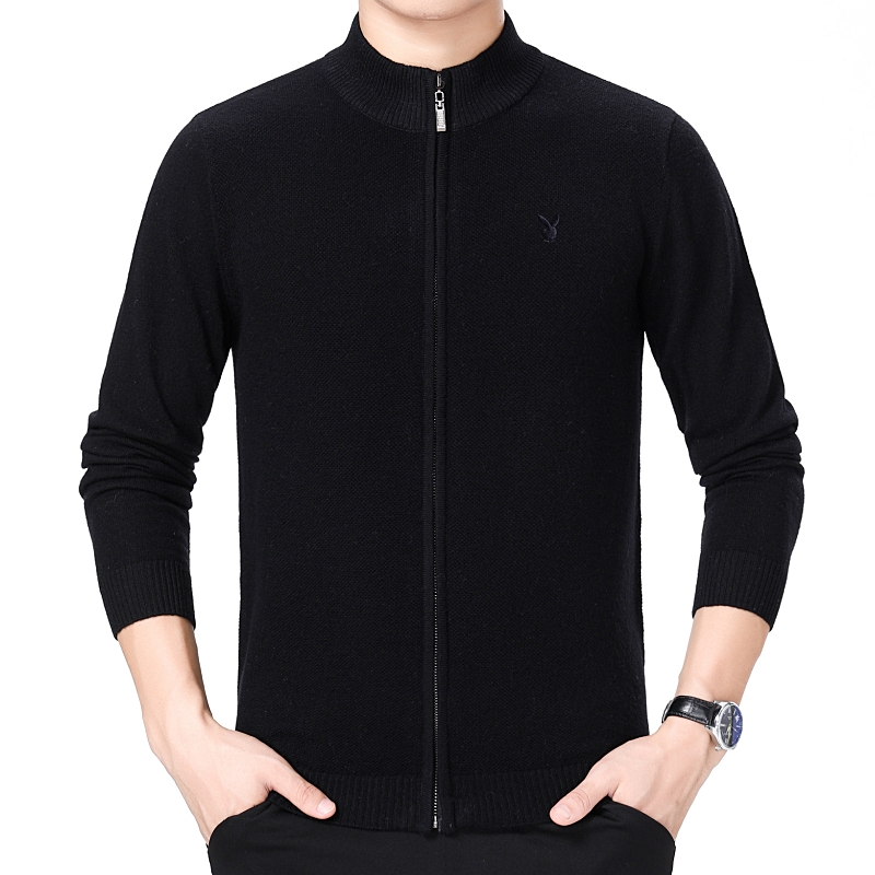 花花公子正品中年男士羊絨毛衣商務男裝加厚立領羊毛開衫外套冬裝