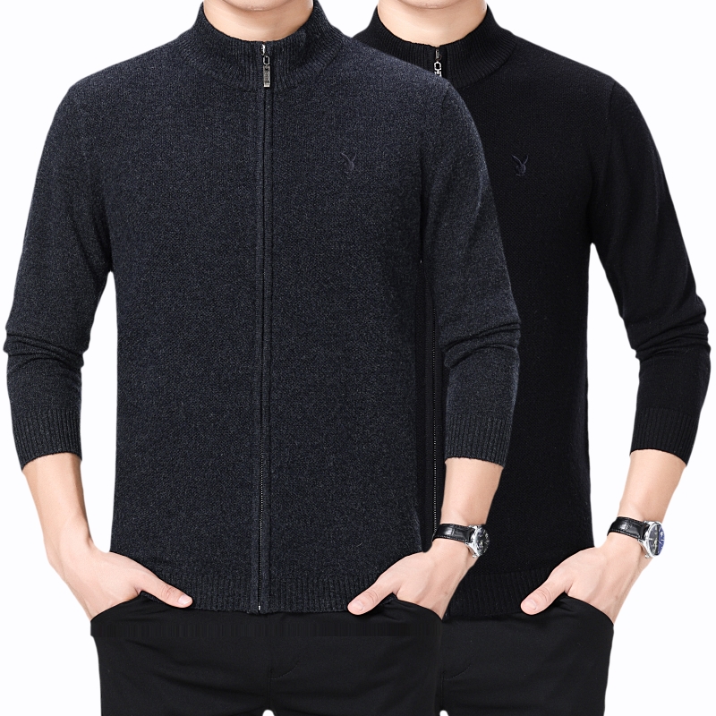/ 花花公子正品中年男士羊絨毛衣商務男裝加厚立領羊毛開衫外套冬裝