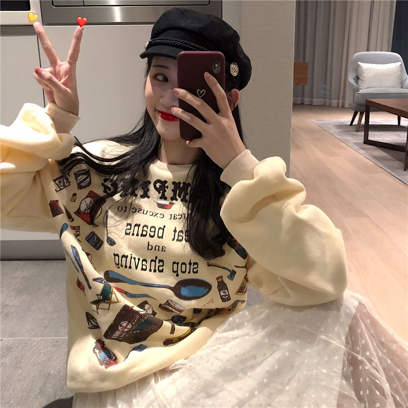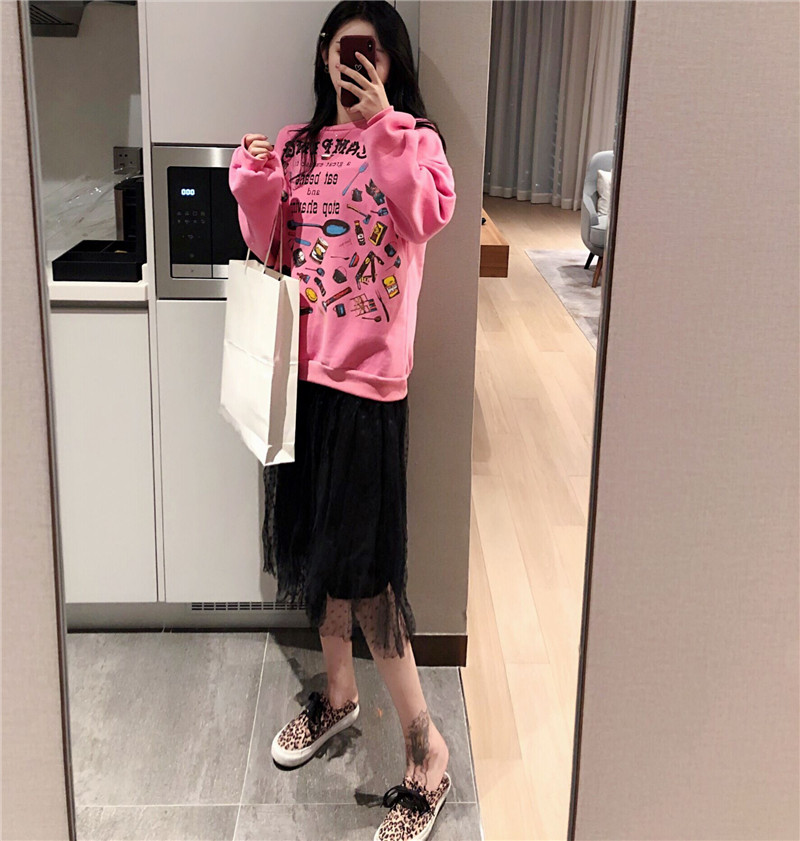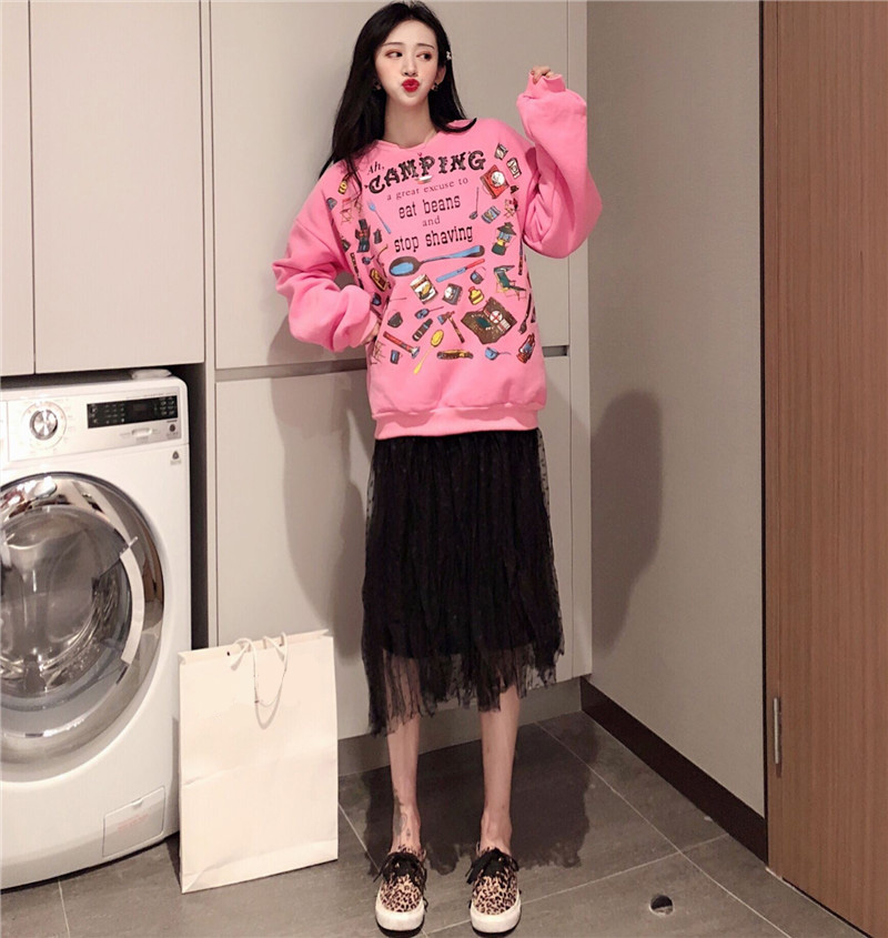 / 新款韓版字母印花加絨衛衣時尚套裝百搭修身中長款連衣裙兩件套女