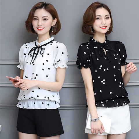 雪紡衫女2017春夏裝女裝百搭韓版寬松大碼小衫上衣短袖打底衫學