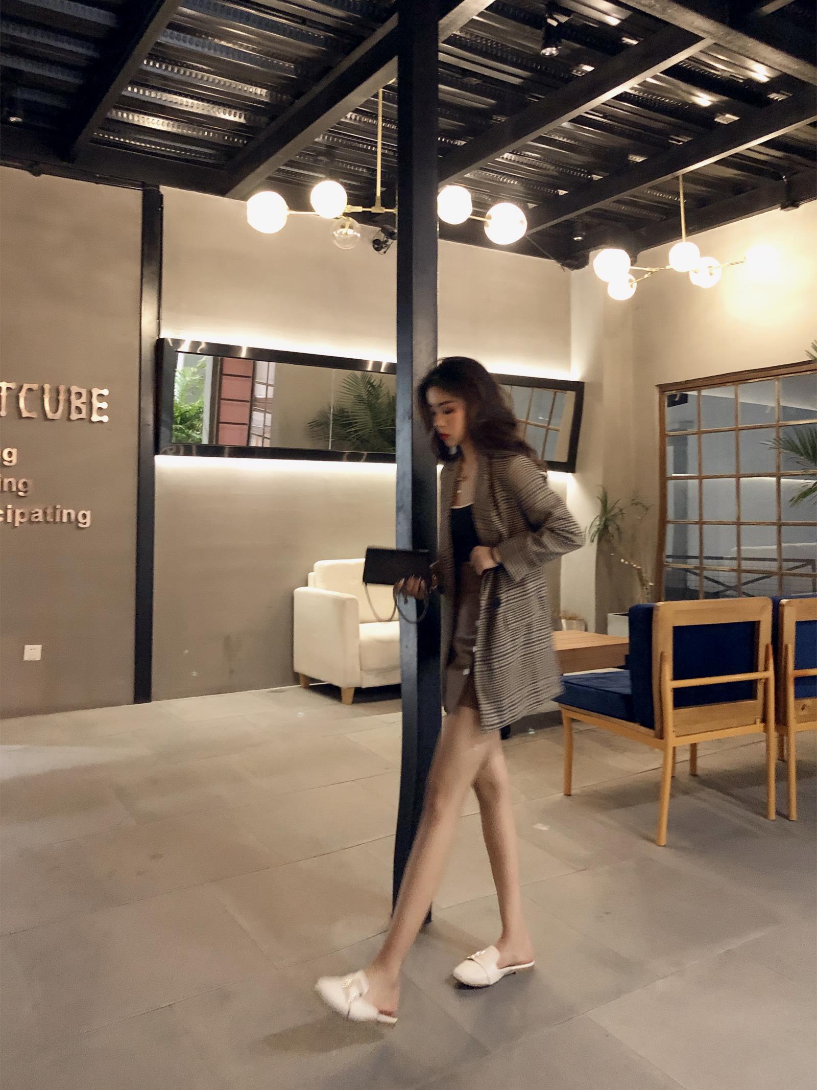/ 小香風韓版chic港風復古早秋新款氣質時尚百搭格子兩粒扣西服外套