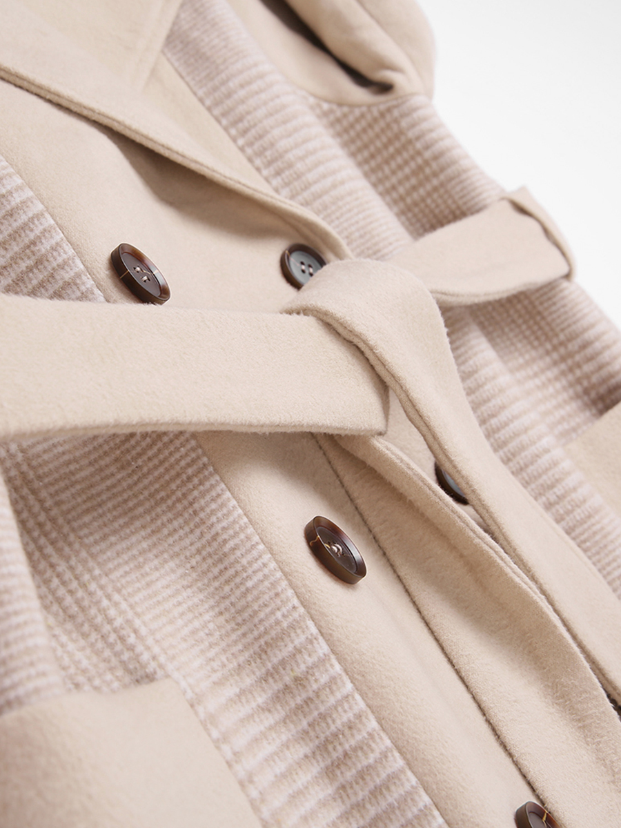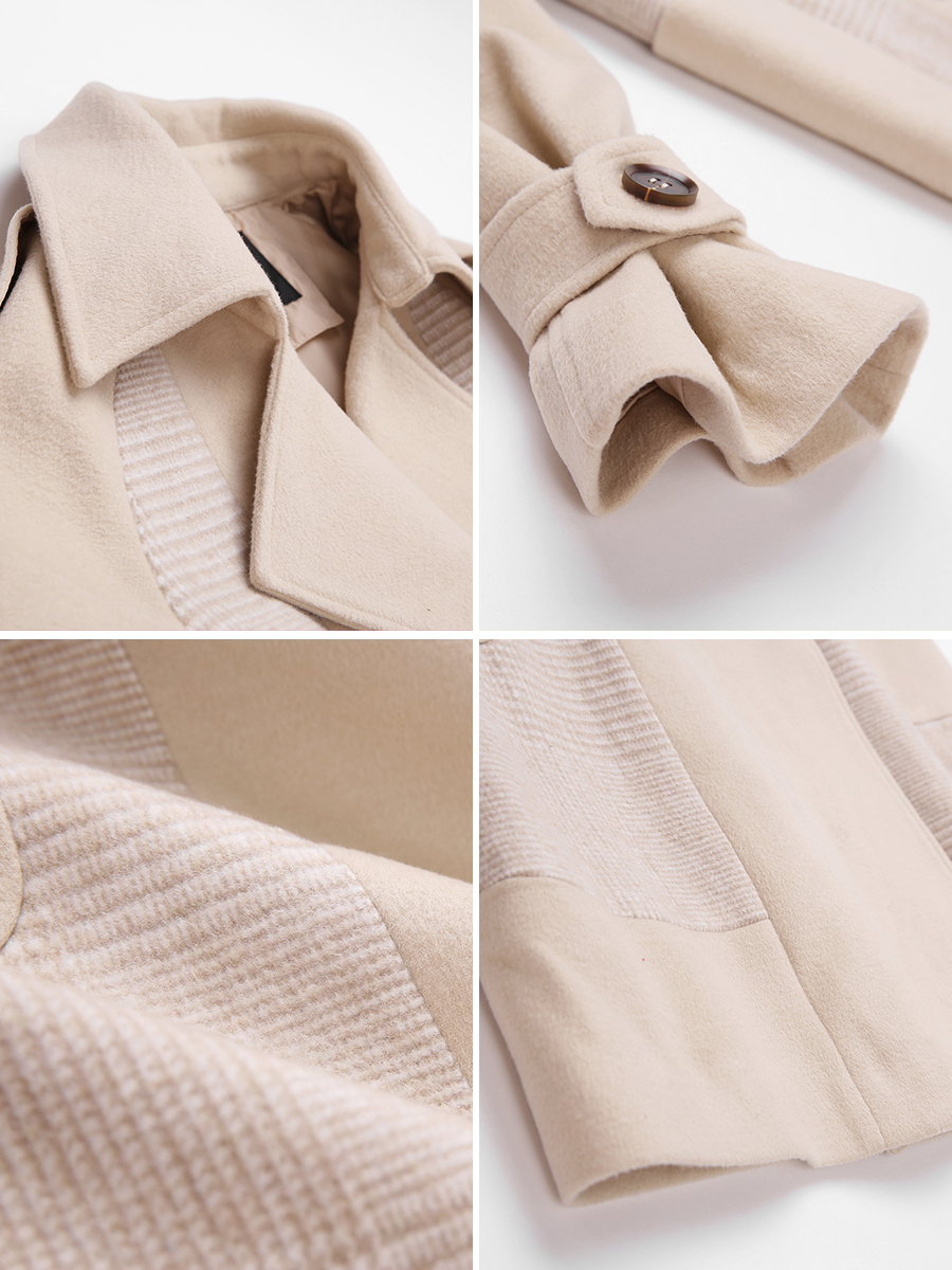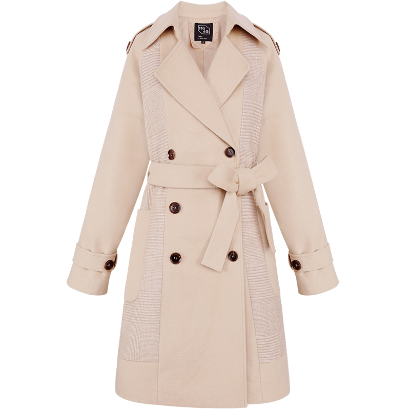 MG小象收腰顯瘦毛呢外套女冬季2018新款中長款拼接蝴蝶結呢子大衣
