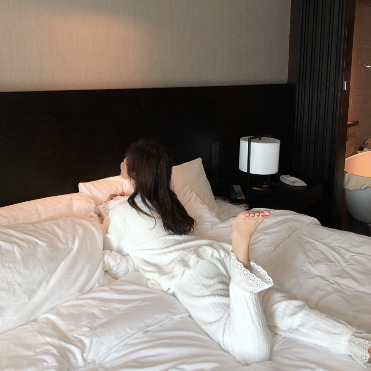 / 2018新款韓版舒適時尚秋冬加厚保暖花邊長袖睡衣家居服套裝少女潮