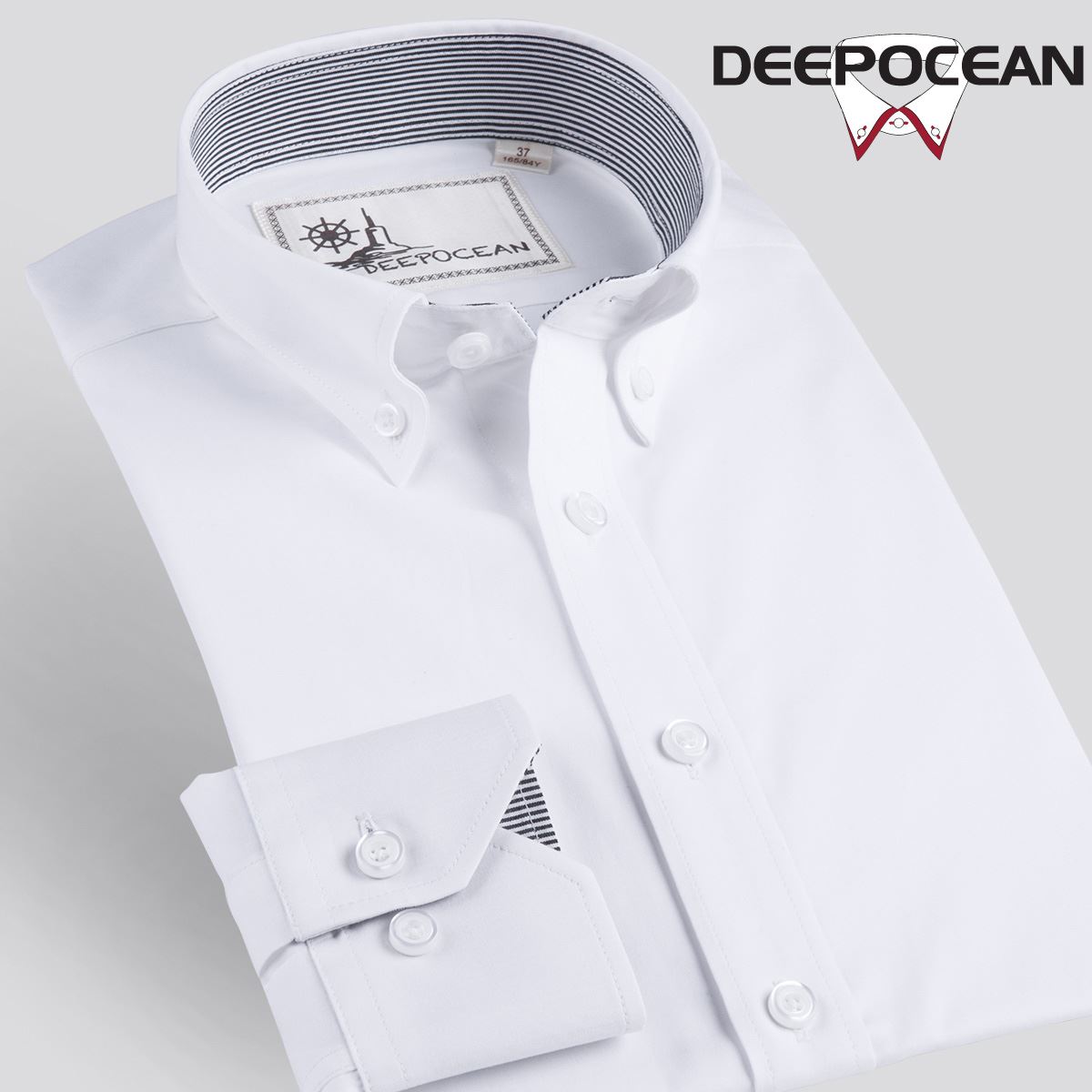 / 秋季精紡牛津紡男士長袖白襯衫釘扣領韓版修身型貼身純棉男裝襯衣