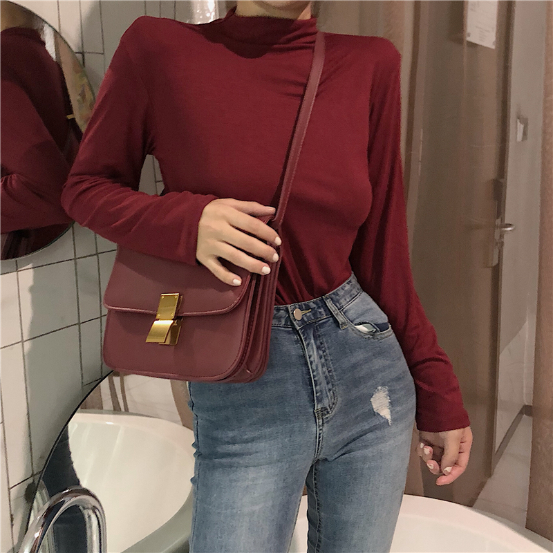 2018新款秋季女韓版打底顯瘦時尚長袖百搭T恤半高領純色修身上衣