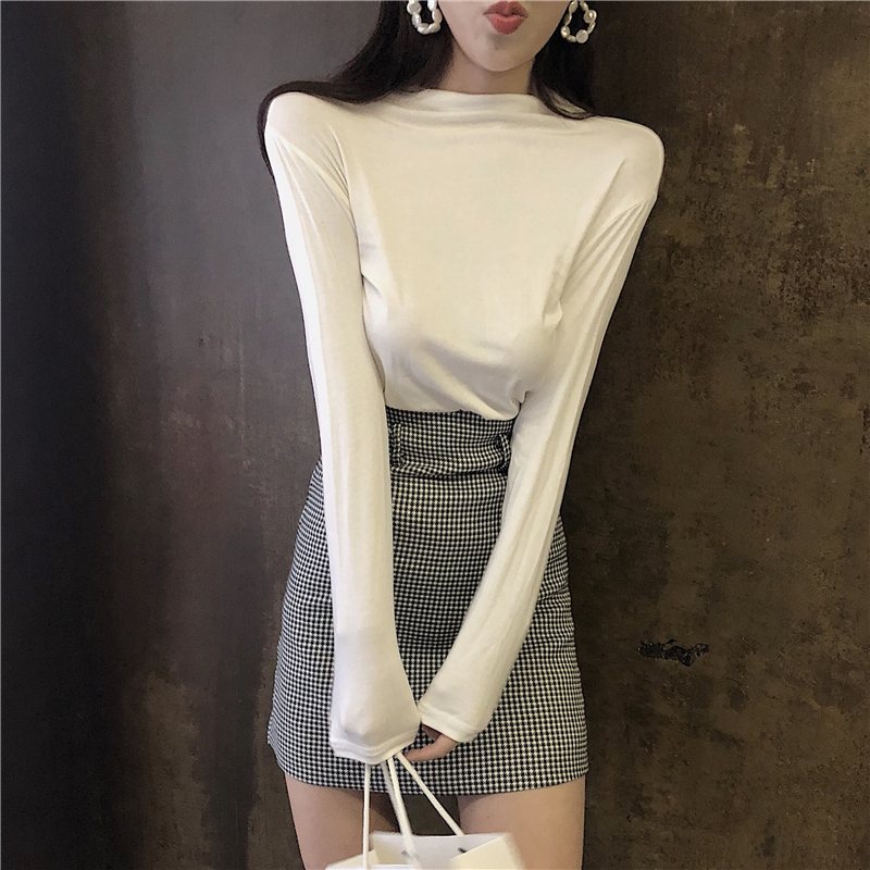 / 2018新款秋季女韓版打底顯瘦時尚長袖百搭T恤半高領純色修身上衣
