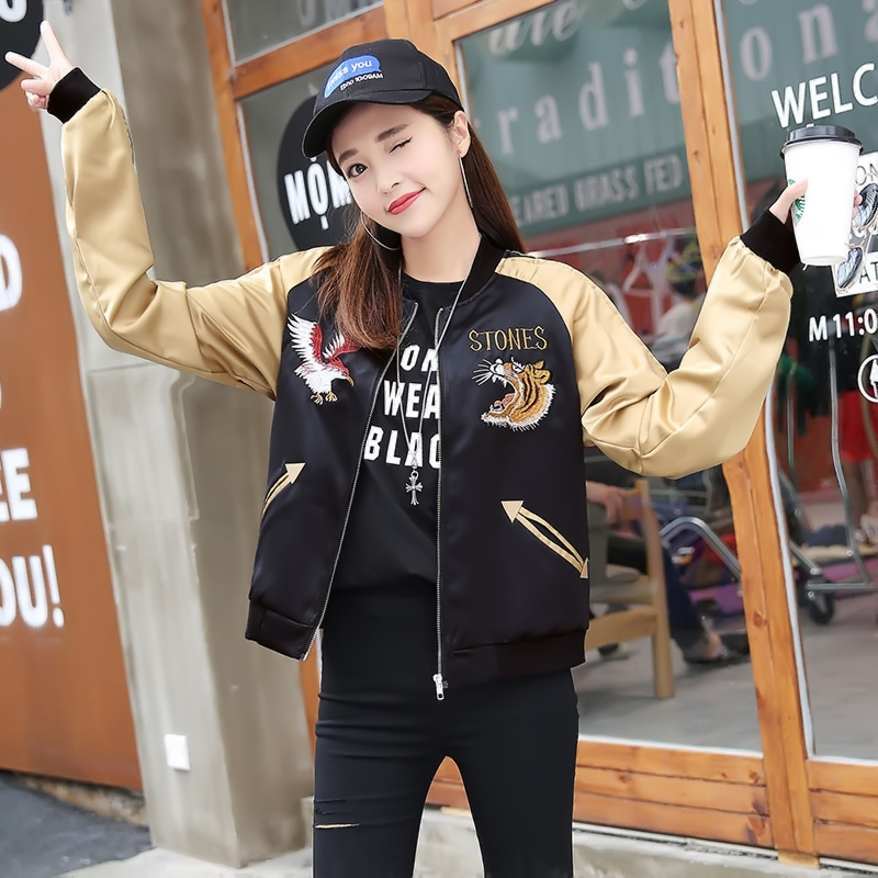 2017秋裝新款韓版老虎頭刺繡棒球服女裝春秋bf寬松短款夾克外套潮