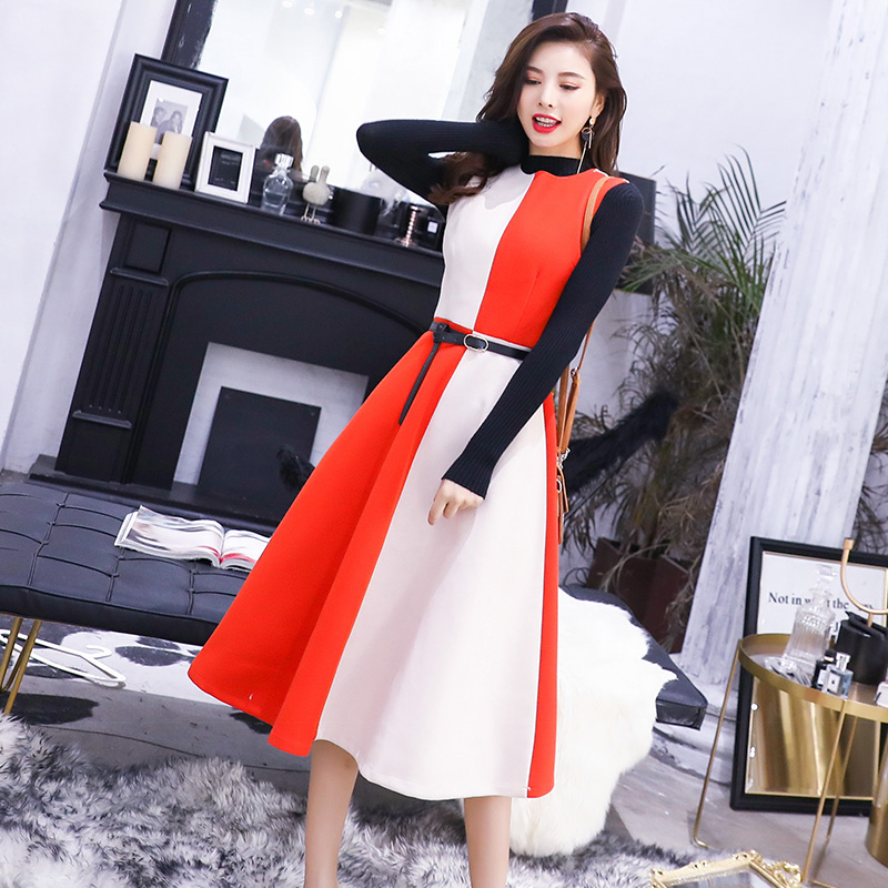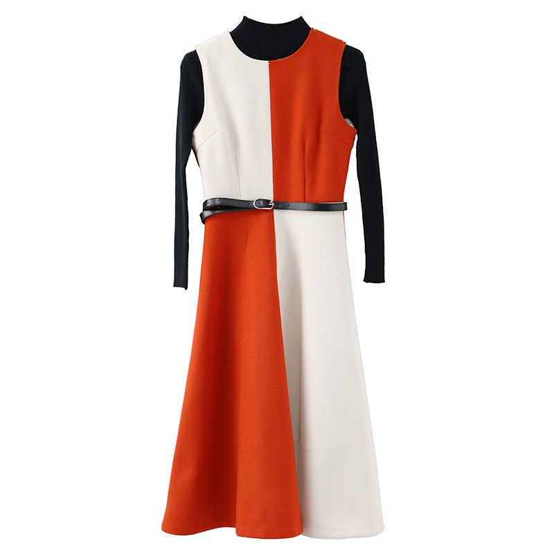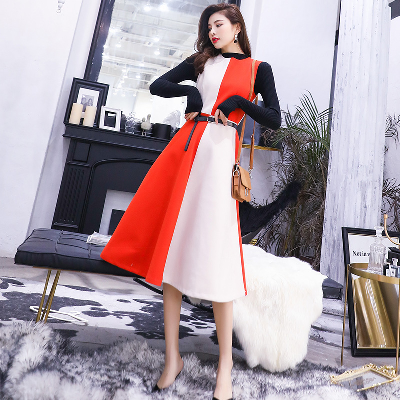 / 背帶裙套裝2018秋冬新款中長款毛呢背心裙針織衫毛衣兩件套連衣裙