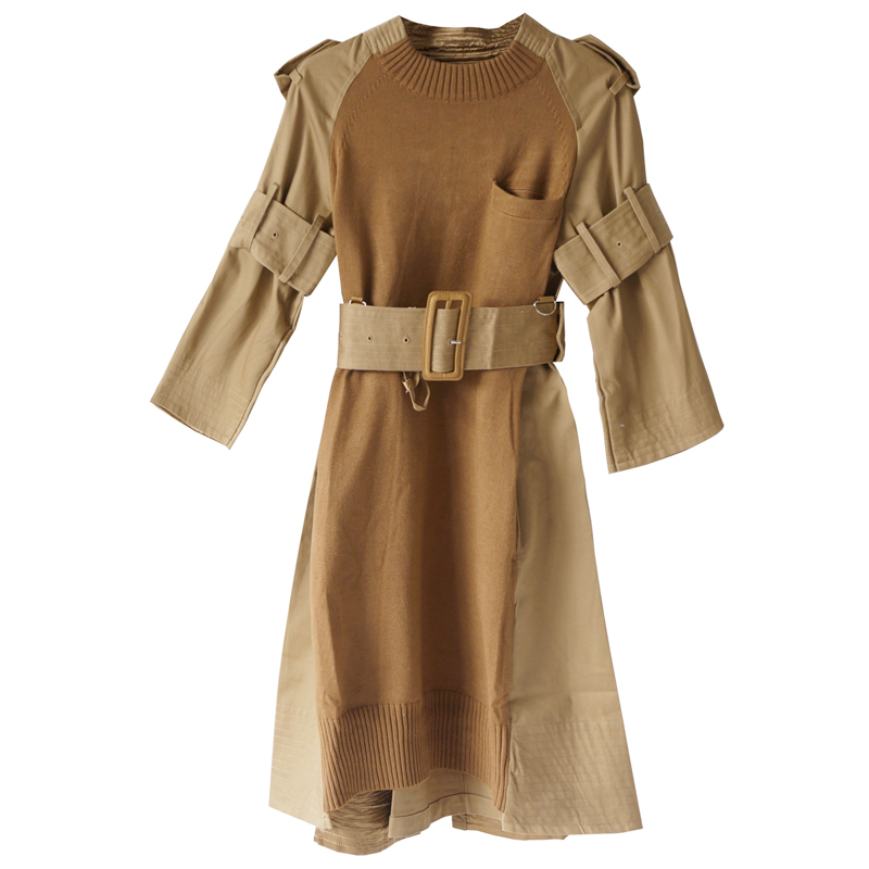 2018新款秋季韓版chic針織拼接風衣女中長款港風高腰矮個子連衣裙