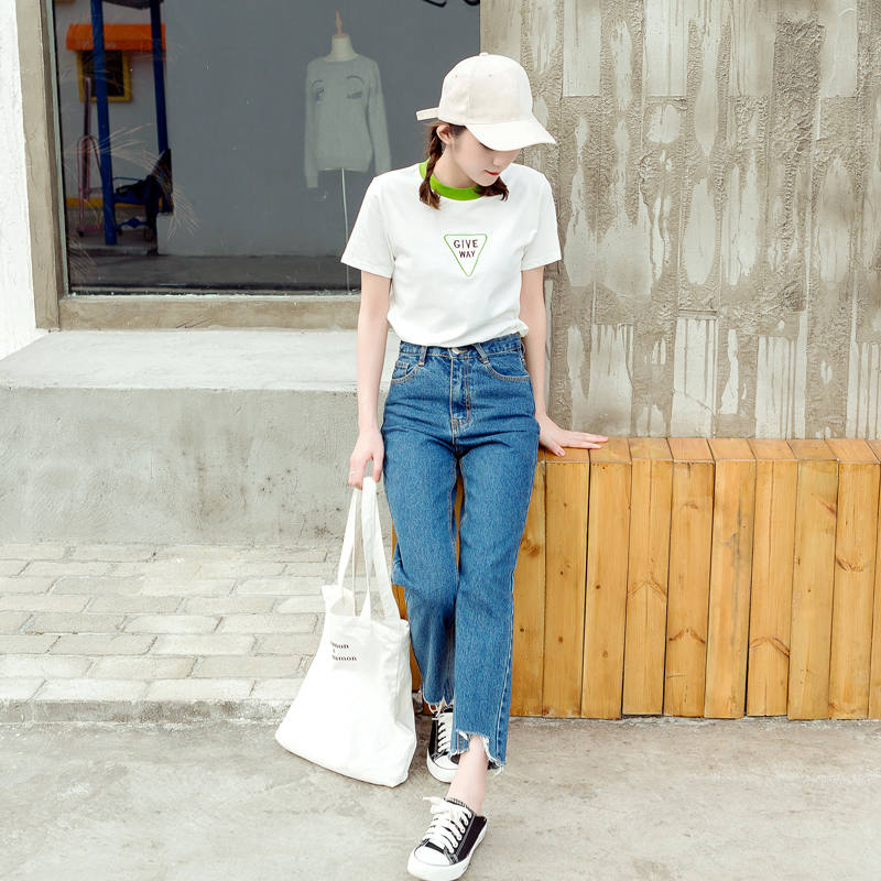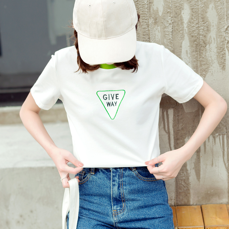 / 春夏裝新款女裝韓版撞色短袖T恤寬松圓領半袖學生百搭上衣潮