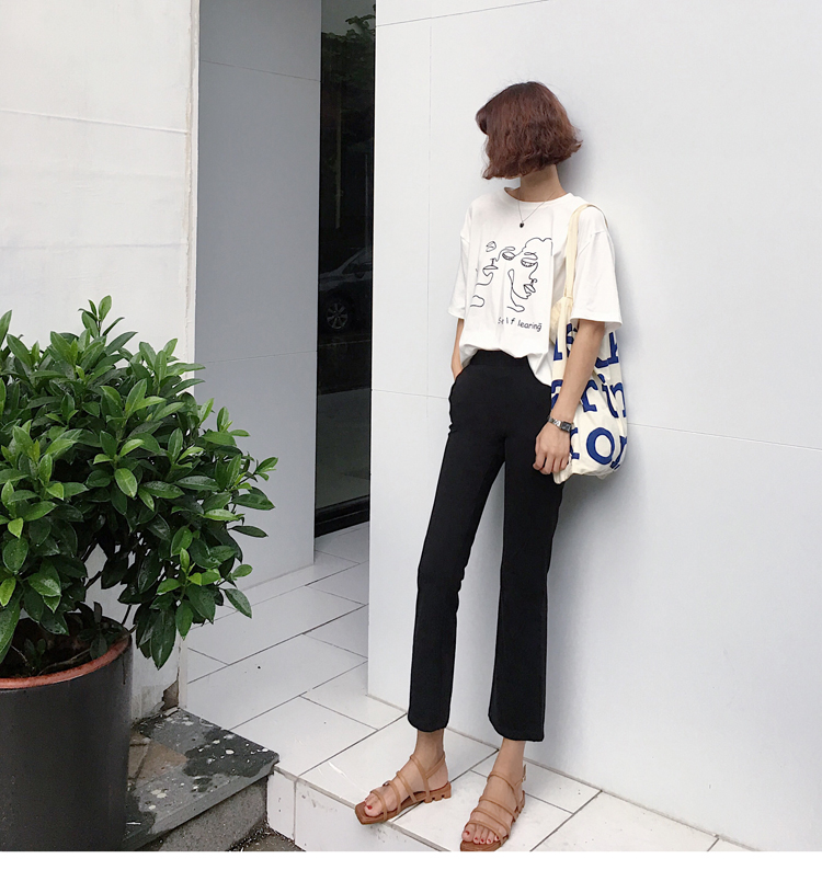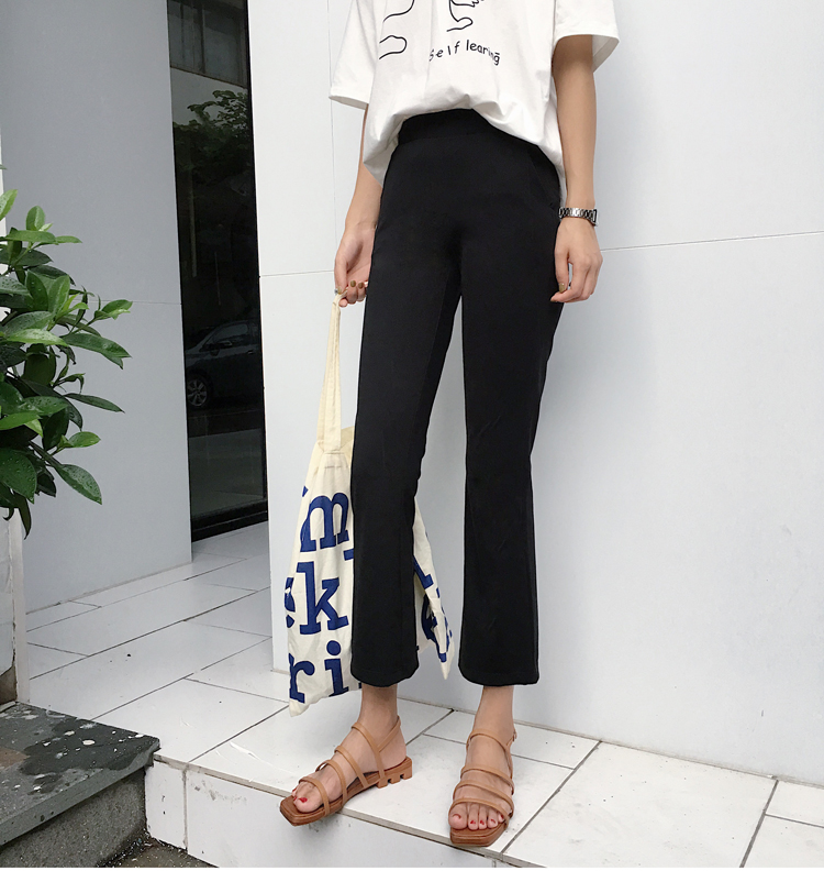 / 夏裝女裝韓版高腰彈力顯瘦微喇叭褲新款黑色休閑褲百搭九分褲長褲