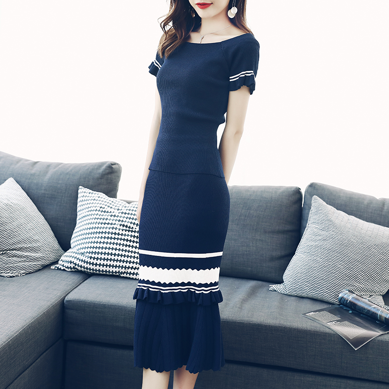 港味針織套裝女神范高腰包臀半身裙子上衣網紅兩件套夏季2018新款