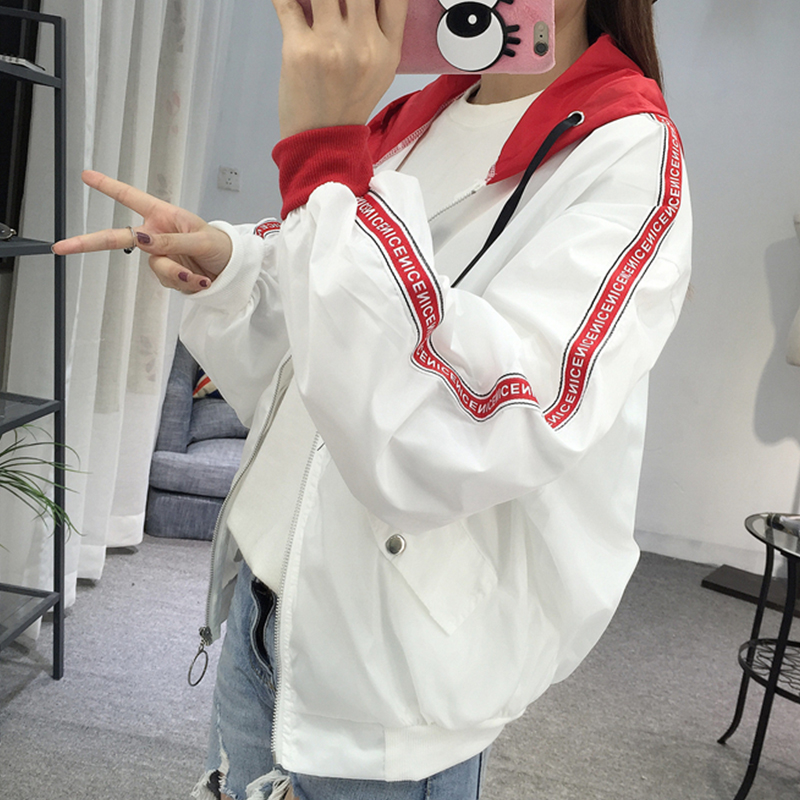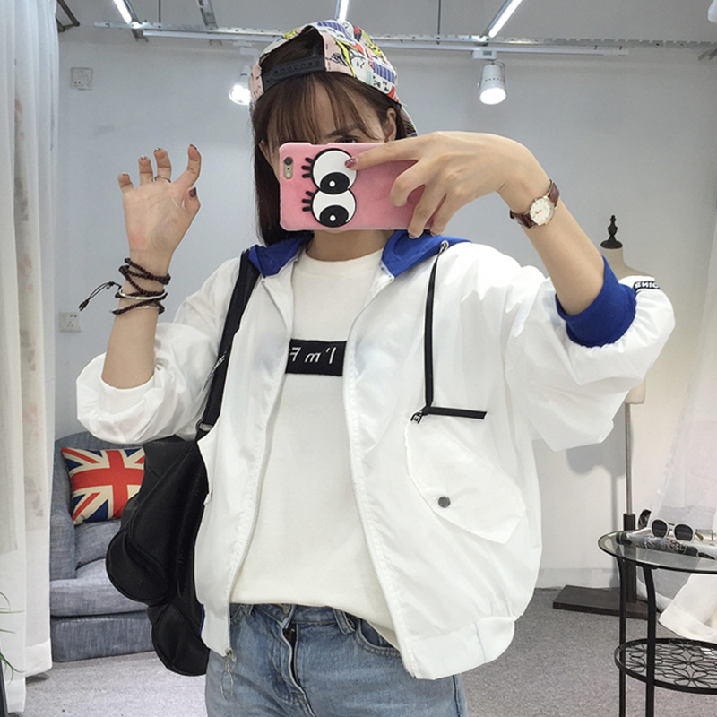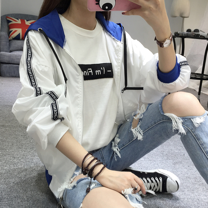 防曬衣女2017夏季韓版原宿BF拼色字母印花學生連帽薄外套防曬服潮