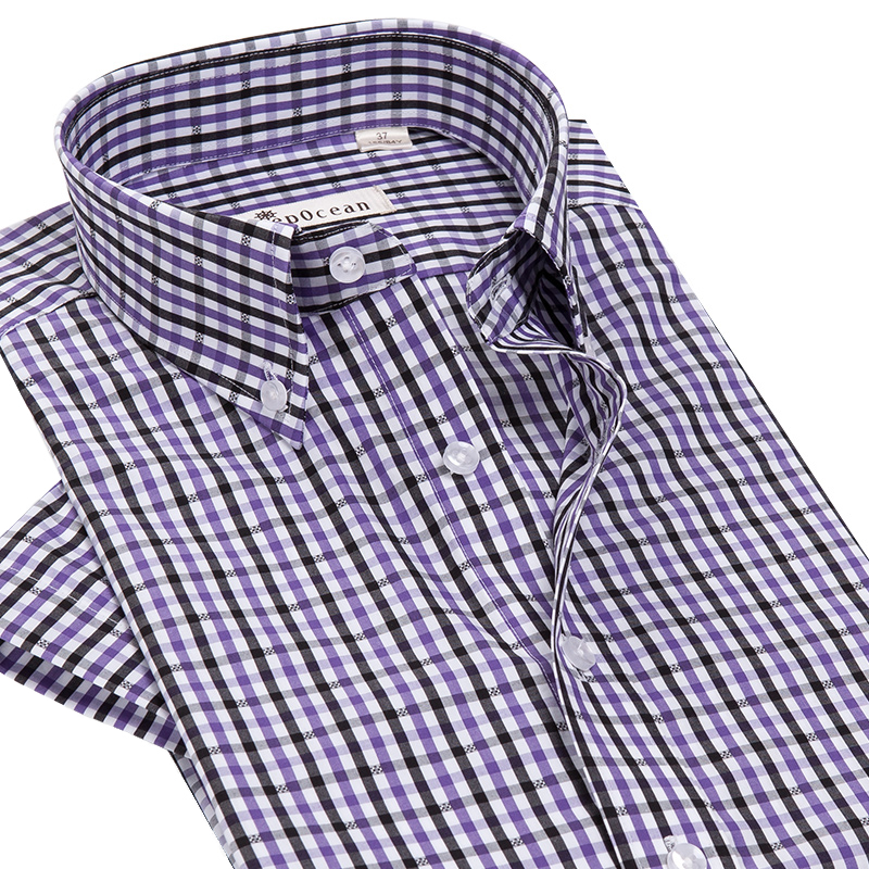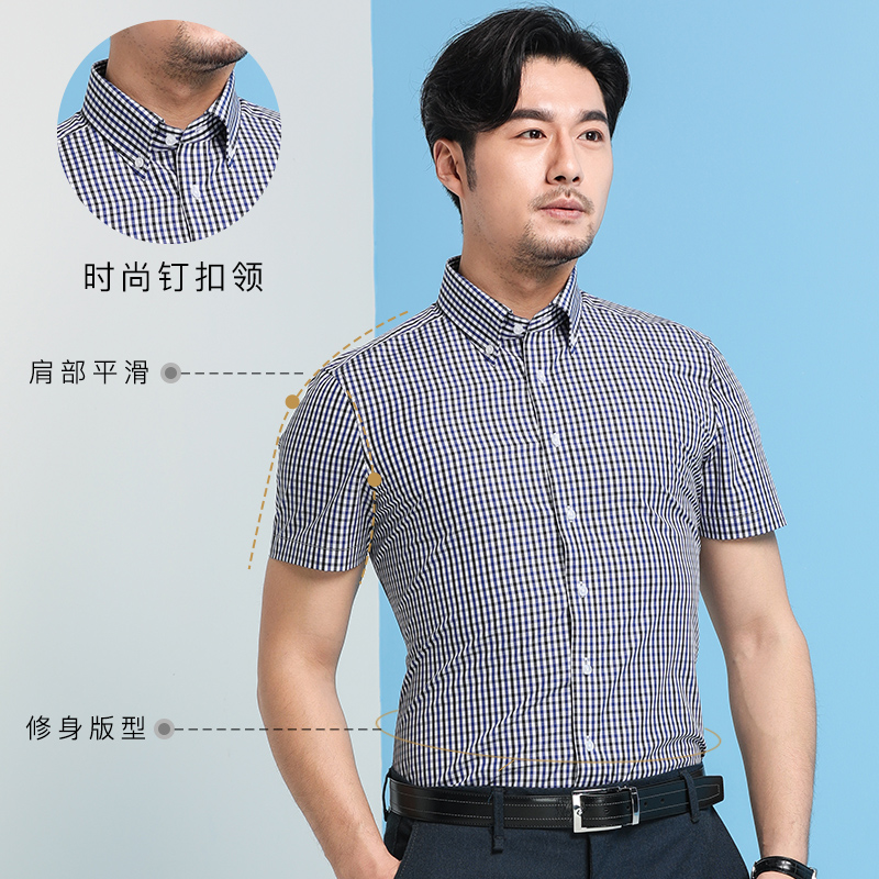 / 夏季純棉格子襯衫男短袖青少年休閑時尚襯衣薄款寸衫修身商務休閑