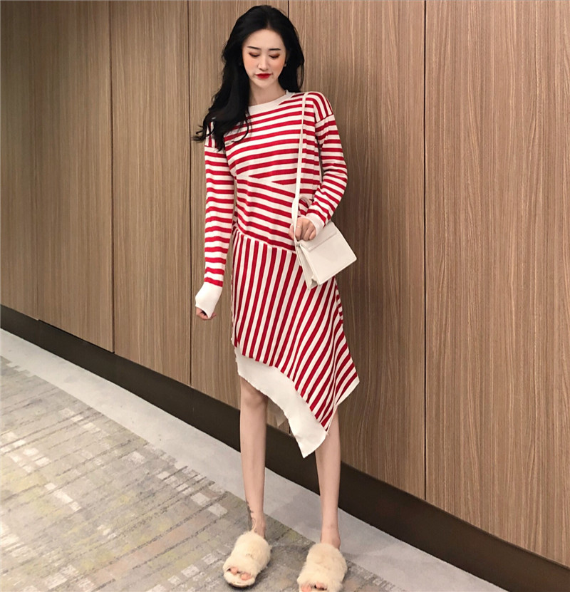 秋冬chic時尚復古套頭毛衣女2018新款氣質不規則百搭條紋針織衫潮