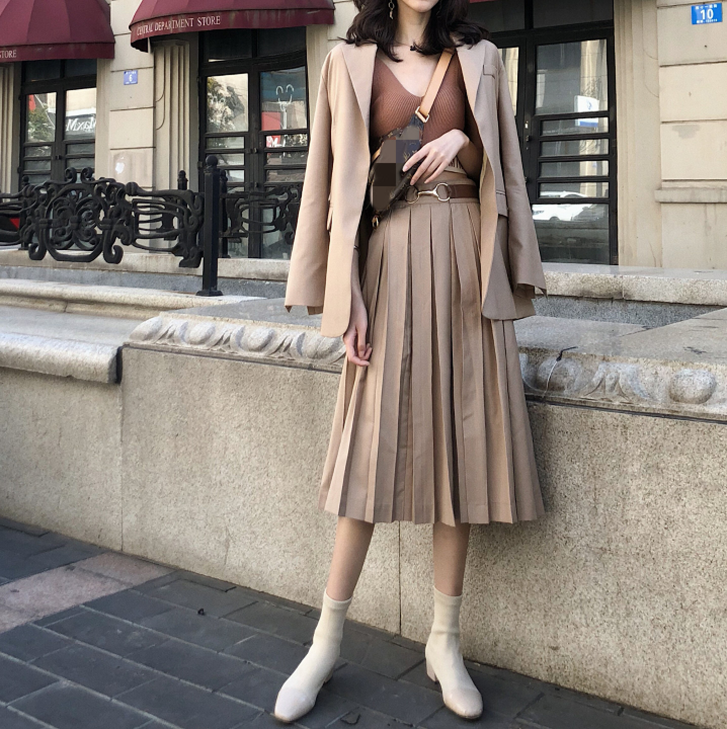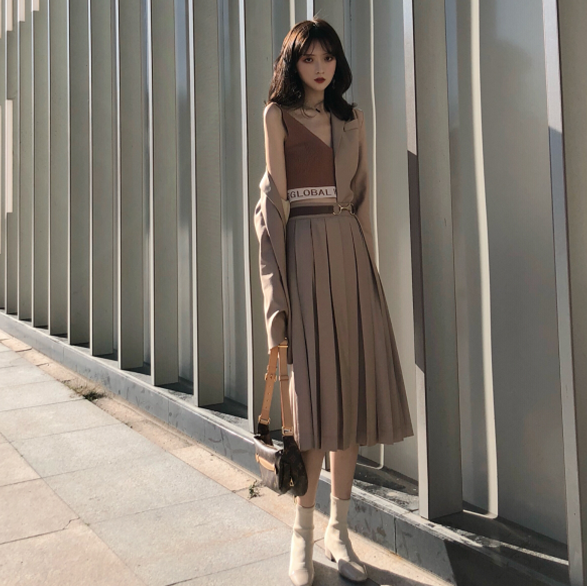 背心|外套|百褶裙