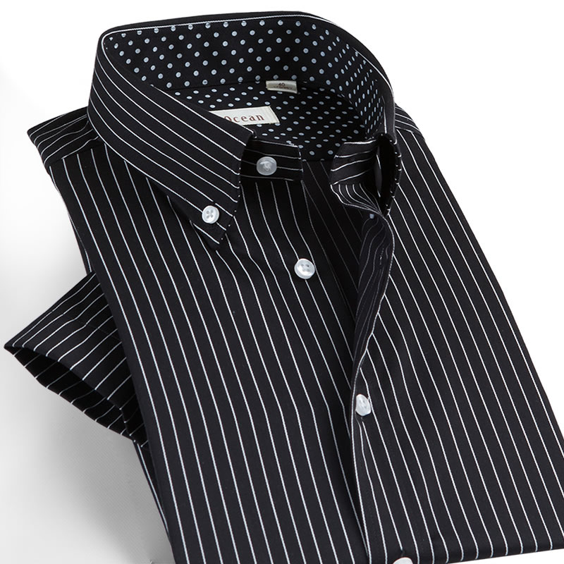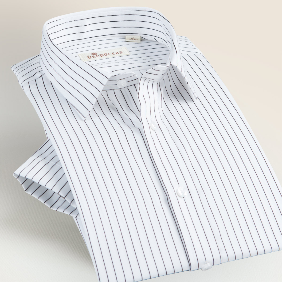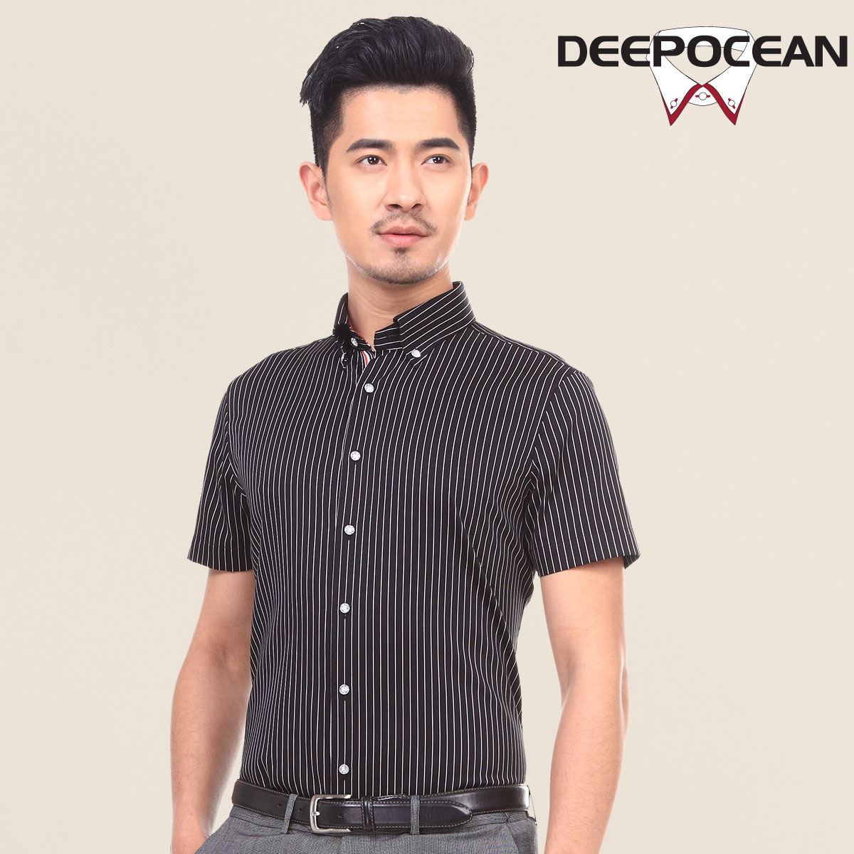 / 夏季新品深海絲光棉男士短袖襯衫商務時尚條紋男裝襯衣韓版修身型
