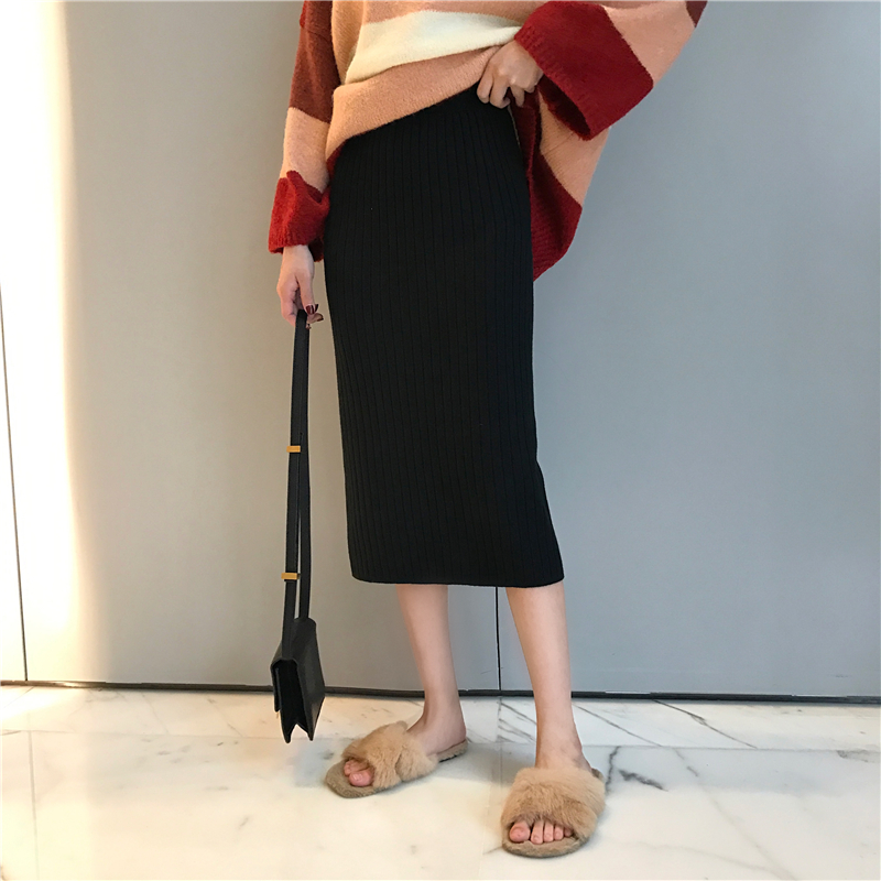 / 新款寬松慵懶溫柔拼色條紋毛衣時尚套裝開叉包臀裙半身裙兩件套女