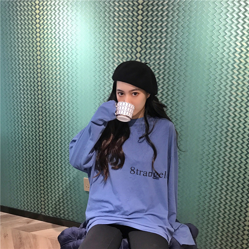 / 秋冬百搭新款韓版中長款顯瘦小清新chic字母印花寬松打底T恤上衣